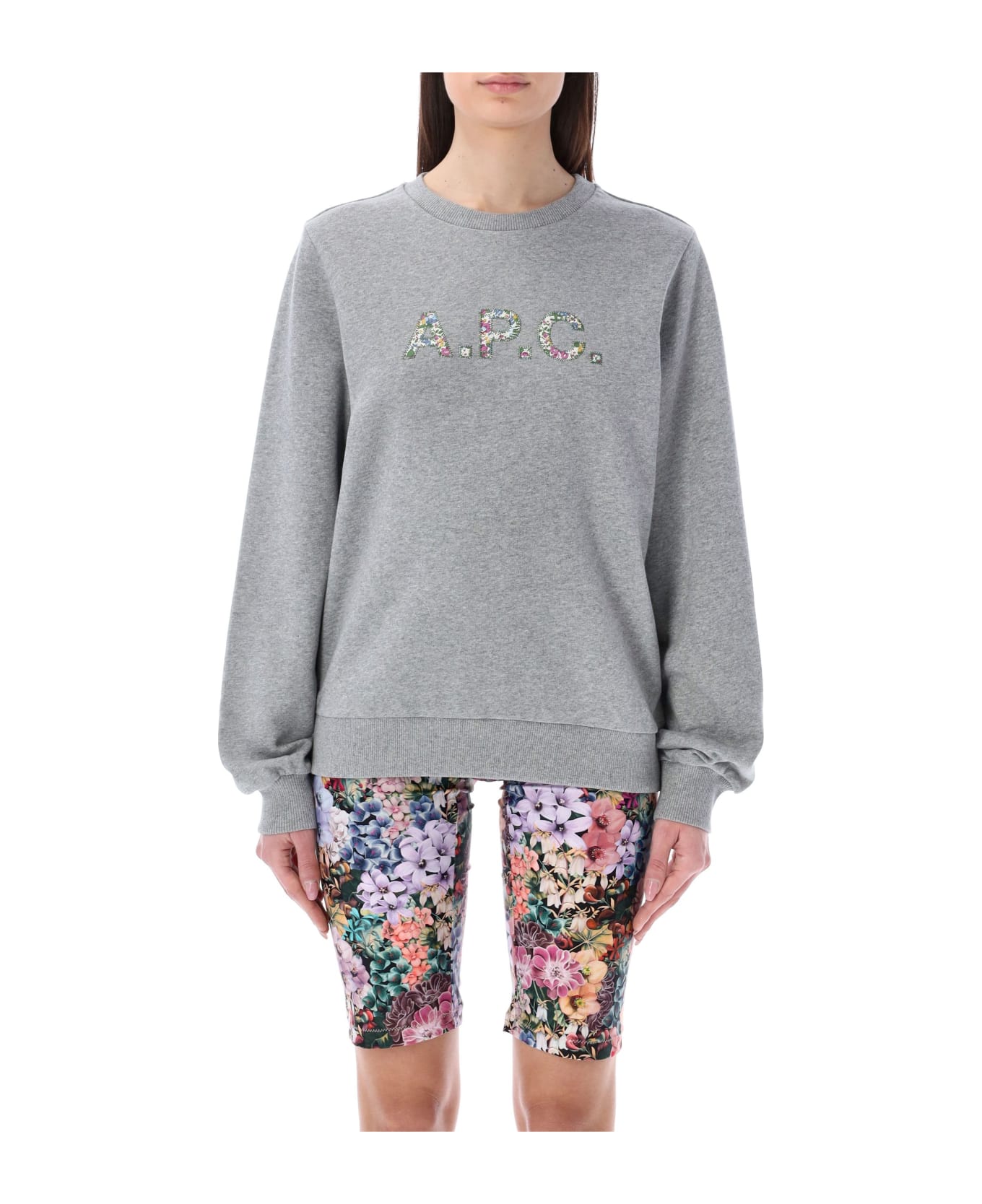 Cotton Floral Sweatshirt By A. p. c. Featuring: Ribbed Crewneck Long Sleeves A. p. c. Floral Patch At Front Ribbed Cuffs And Hem Model Is 1,72 M Tall And She Is Wearing Size S