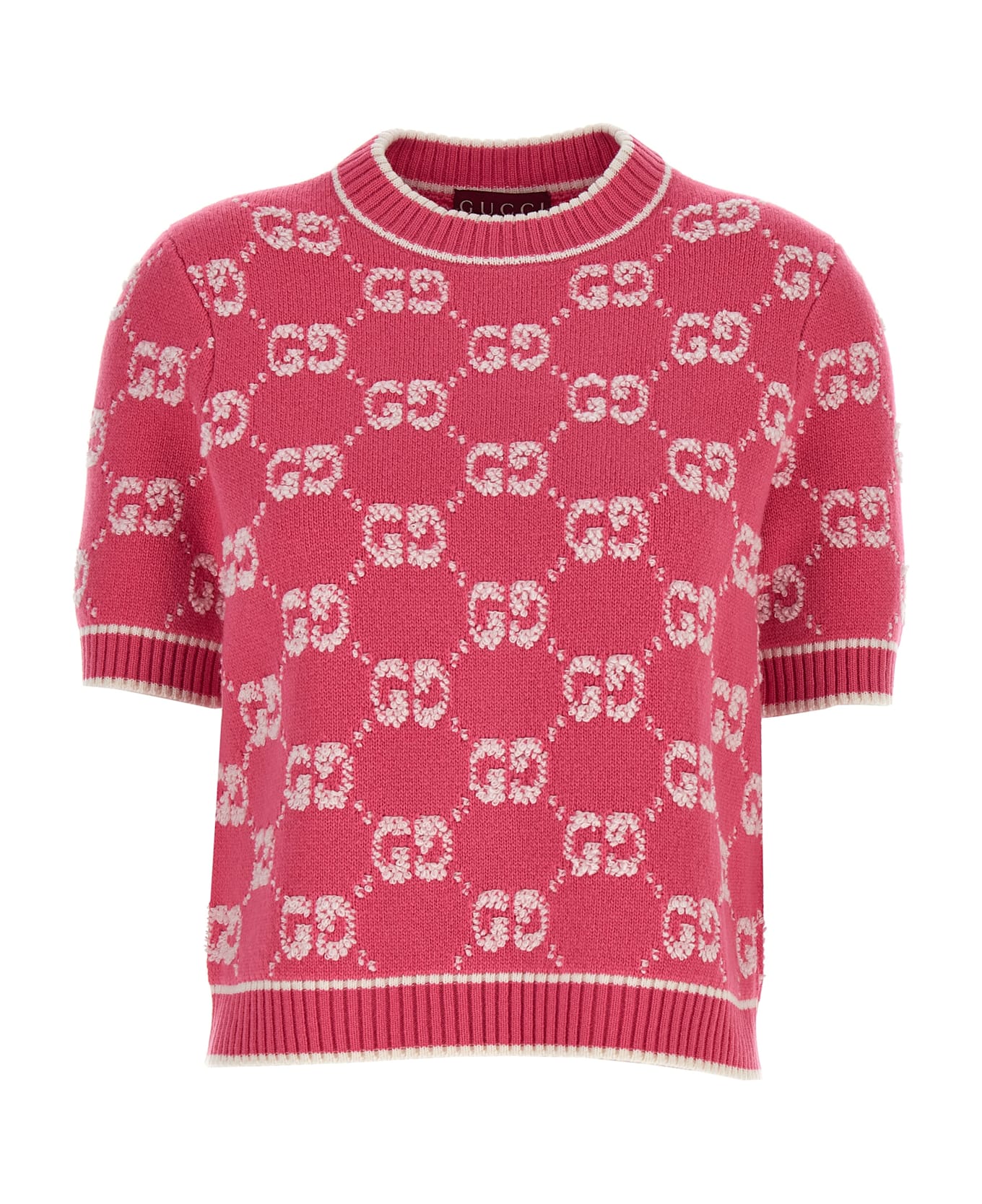 Wool sweater with all-over 'GG' logo, crew neck and short sleeves. Composition: 100% wool
