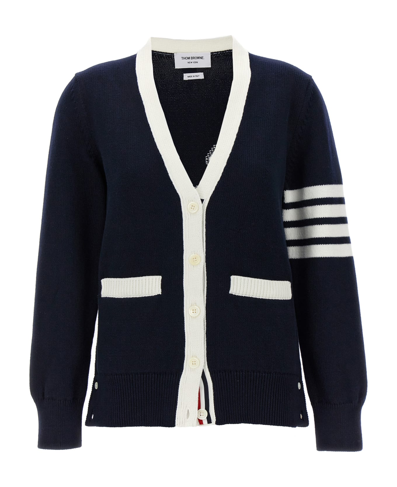 Hector' cotton cardigan with back jacquard design, 4Bar detail on the sleeve, button closure, pockets, long cuffed sleeves. Composition: 100% cotton
