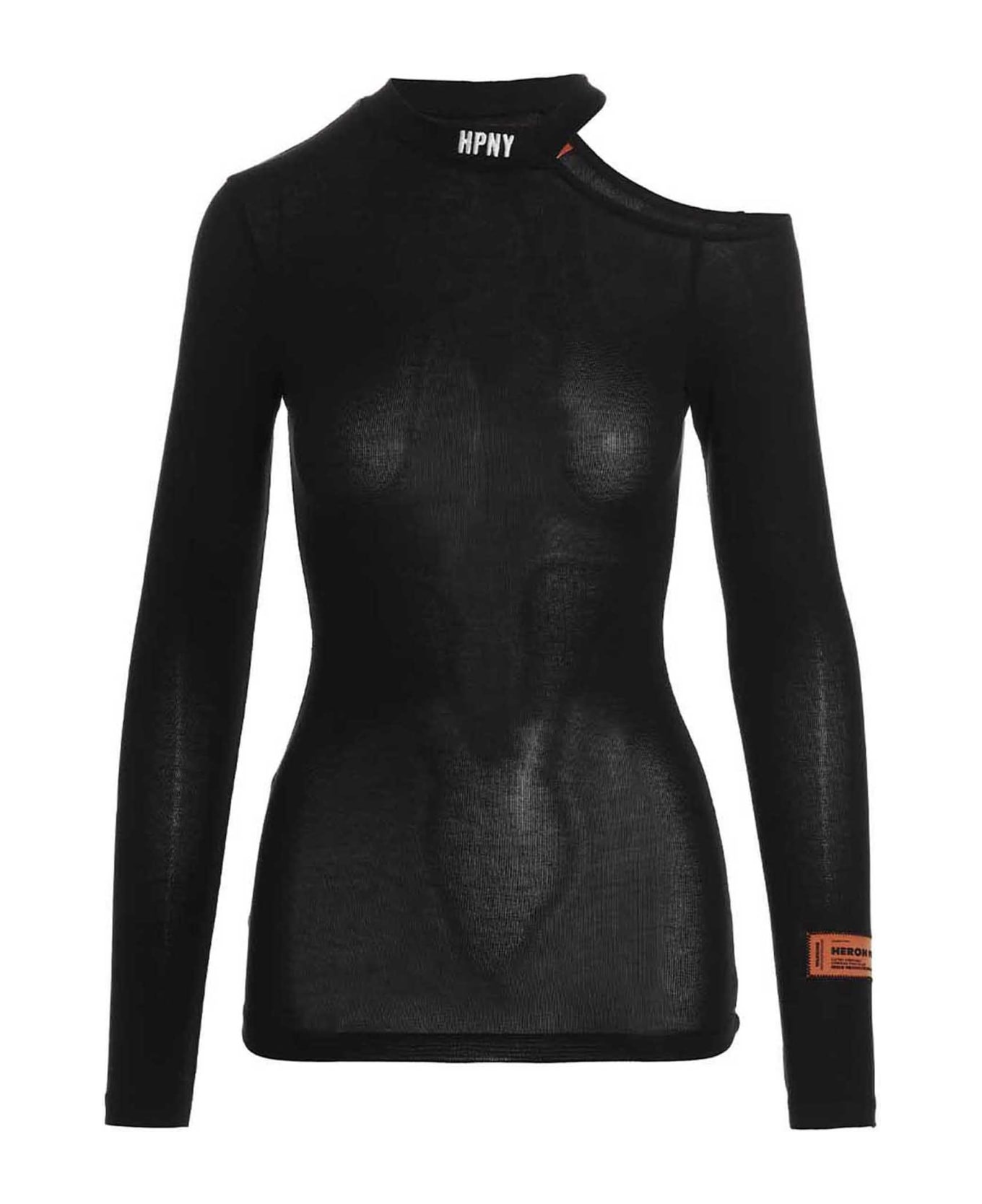 HPNY' stretch viscose crewneck sweater with front logo embroidery, long sleeves and a cut-out detail on the shoulder. Composition: 99% viscose 1% elastane