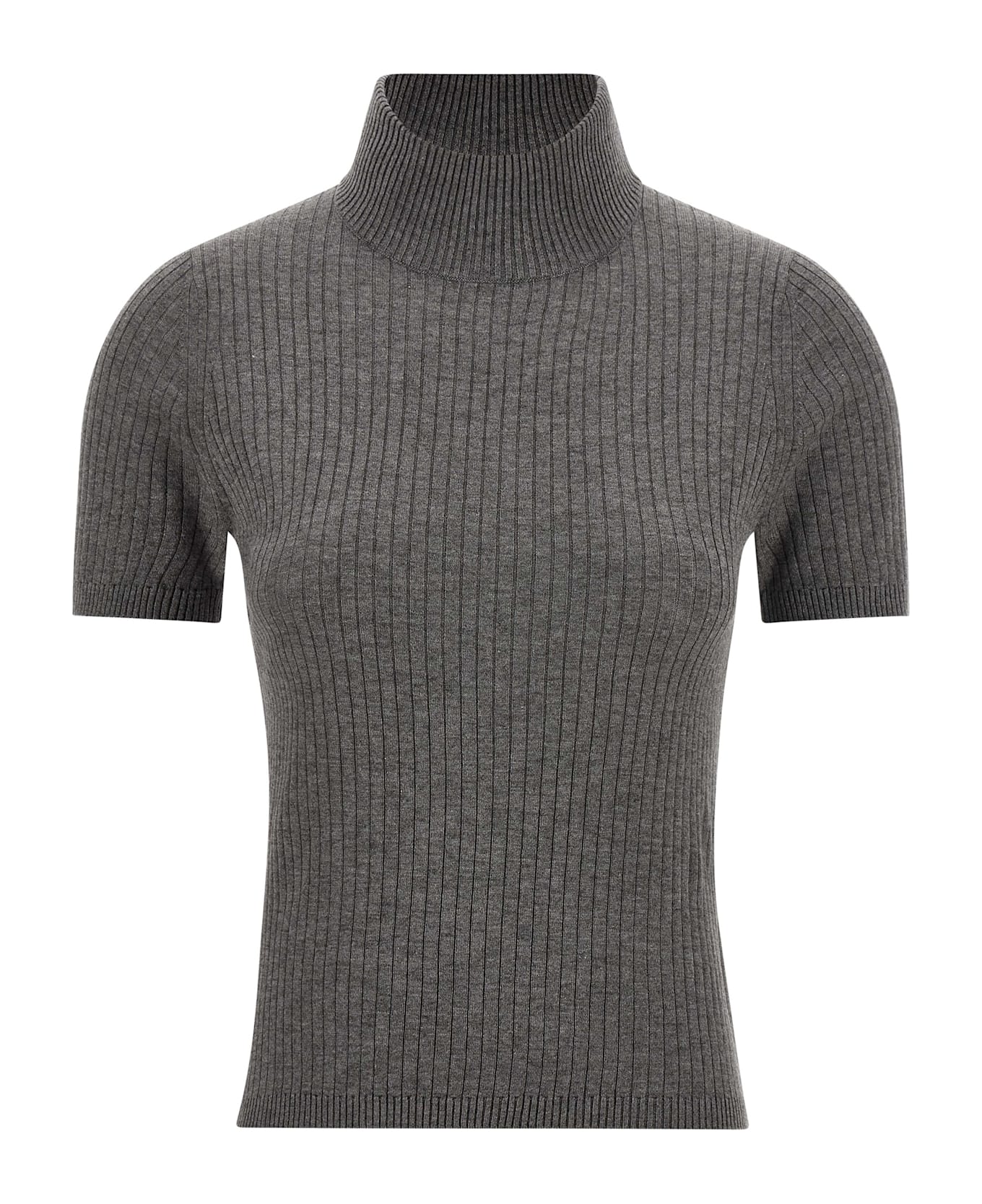 'Janagy' ribbed wool and silk blend sweater, high neck and short sleeves. Composition: 55% silk, 45% wool