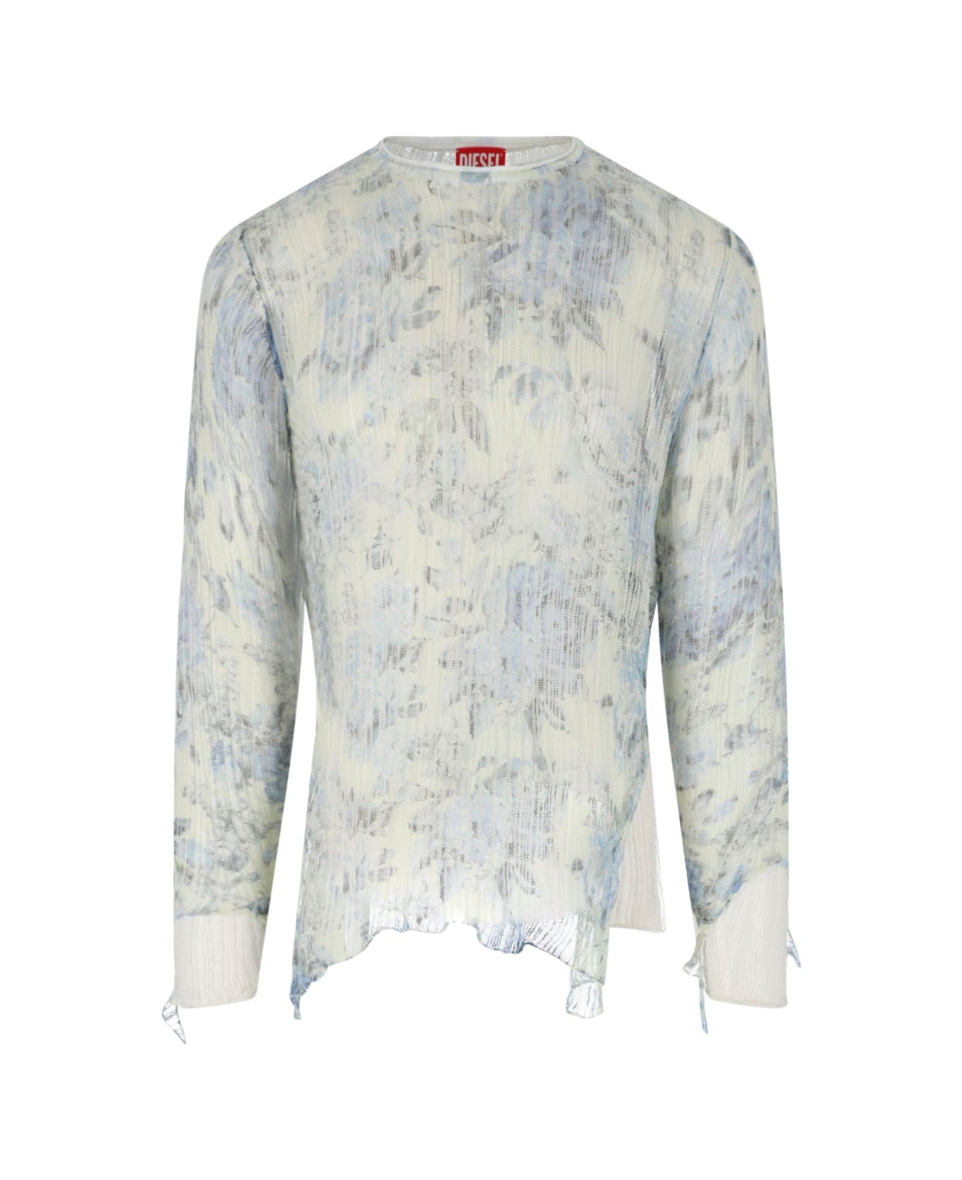 Diesel 'K-Aasmos-A' sweater in light blue cotton with distressed wash, all-over destroyed details, layered design, crew neck, raw cut hem. Composition: 100% Cotton