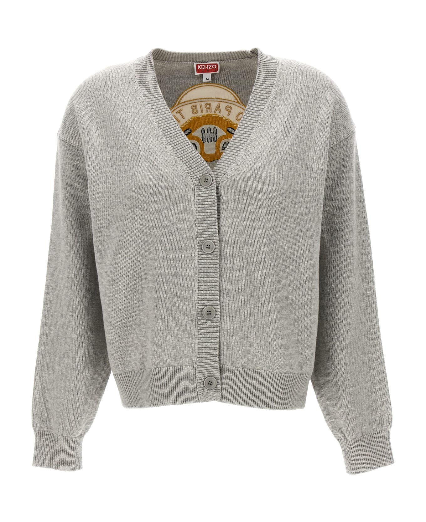 'Kenzo tiger academy' cotton blend wool cardigan with logo intarsia on the back, button closure, V-neck.