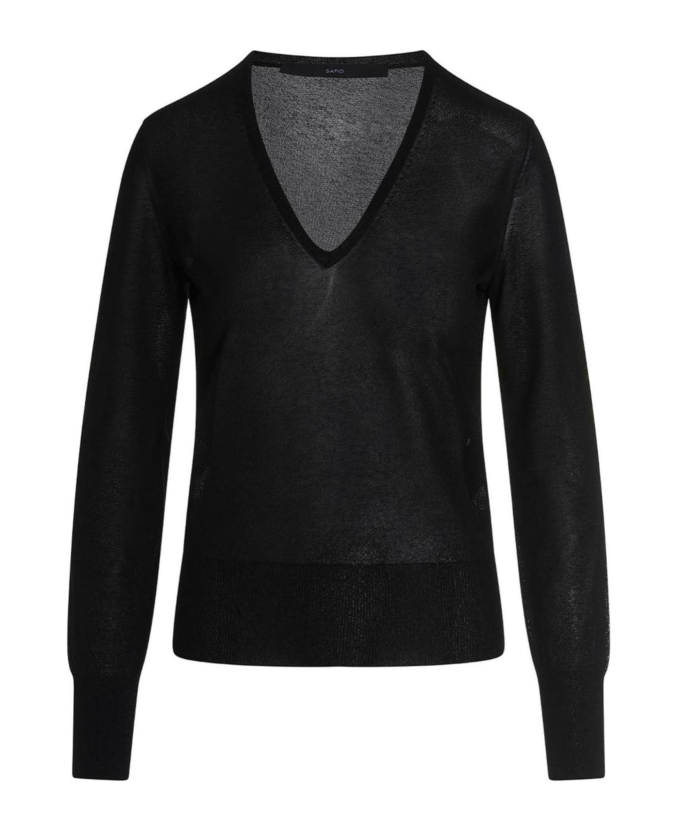 Lamé slightly sheer sweater with a V-neck and long sleeves.