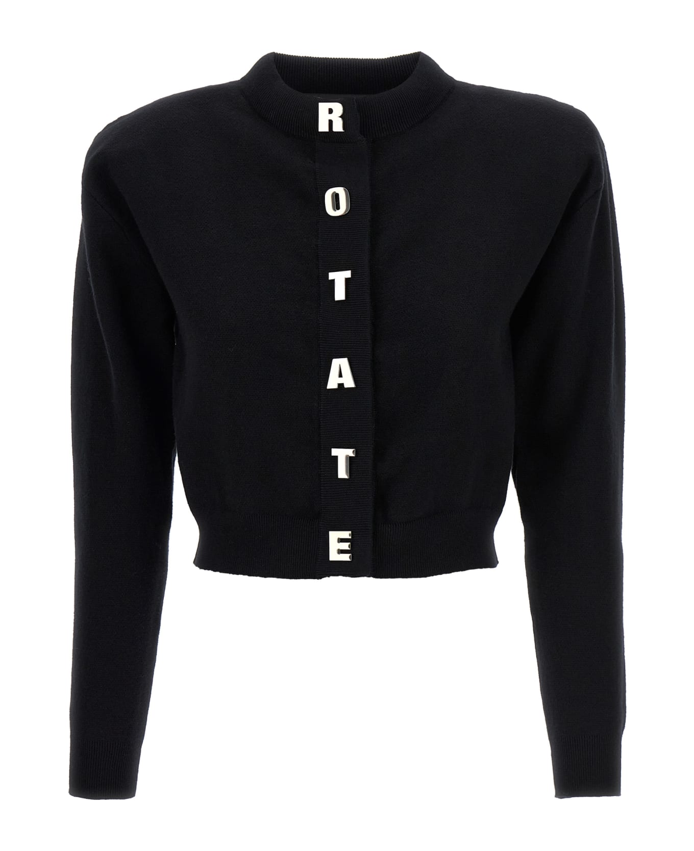 Cardigan in cachemire blend cotton with buttons that form the brand logo, crop model, crewneck with padded shoulders.
