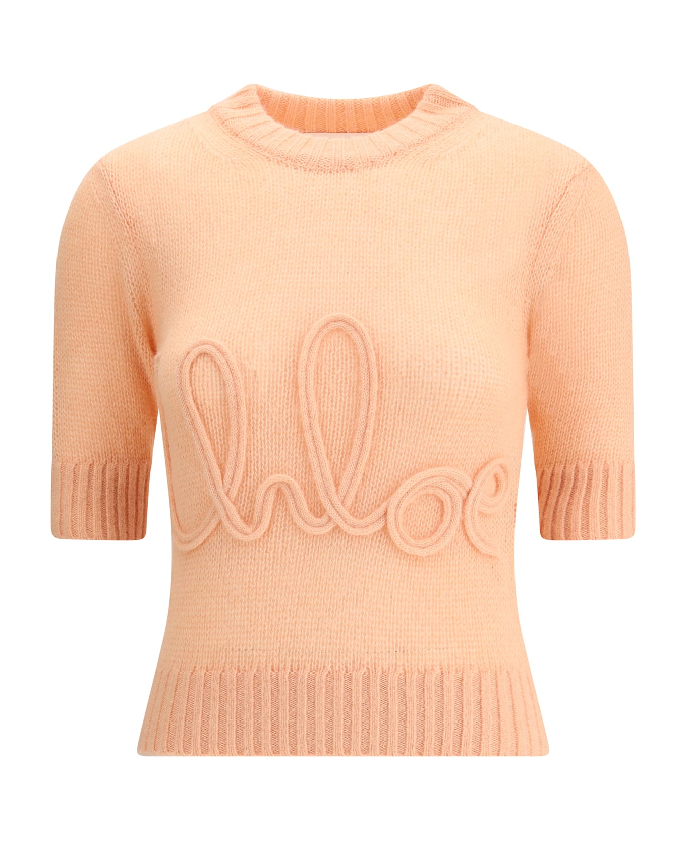 Chloé's logo wool sweater is a luxurious piece that combines comfort with recognizable style. it features a classic crew neck and elbow-length sleeves, made from a fine alpaca wool-silk knit that ensures exceptional softness and a smooth fall. the design is complemented by ribbed edges that neatly finish the garment. the distinctive detail is a large chloé logo embroidered on the front, which adds a graphic and instantly recognizable touch, making it a statement piece for any wardrobe.