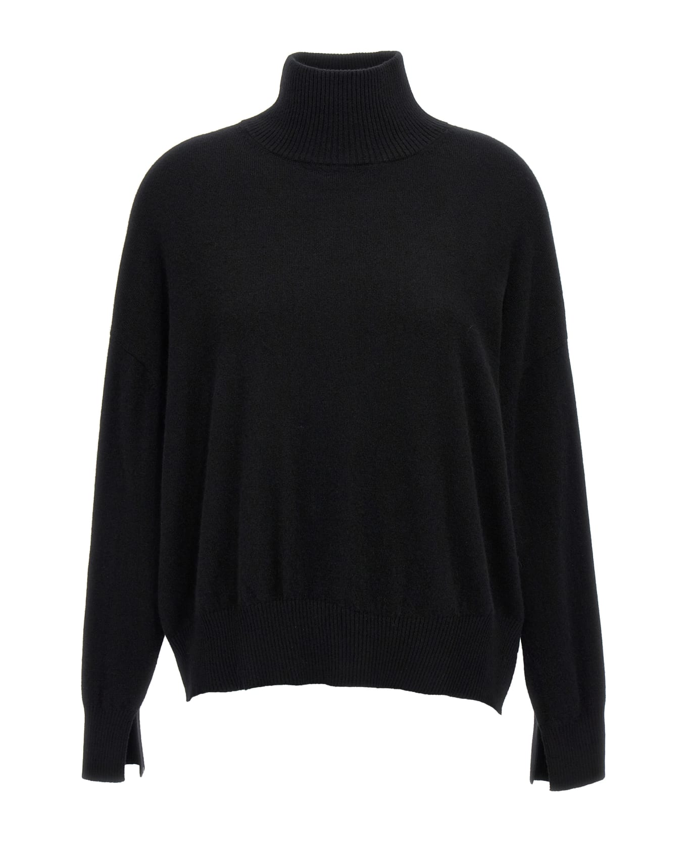 'Murano' cashmere sweater with high neck, slightly dropped shoulder, long sleeves with split on the cuffs.