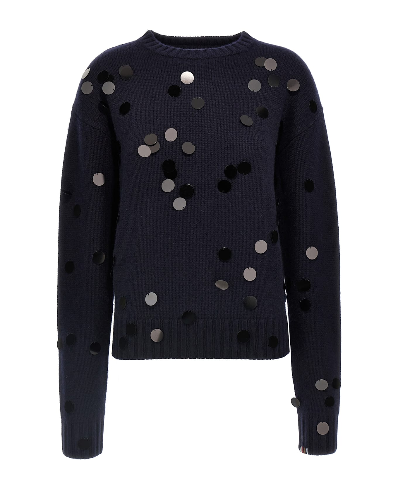 'N. 373 Oldie Sequin' cashmere sweater with maxi sequin appliqué, crew neck, long cuffed sleeves.