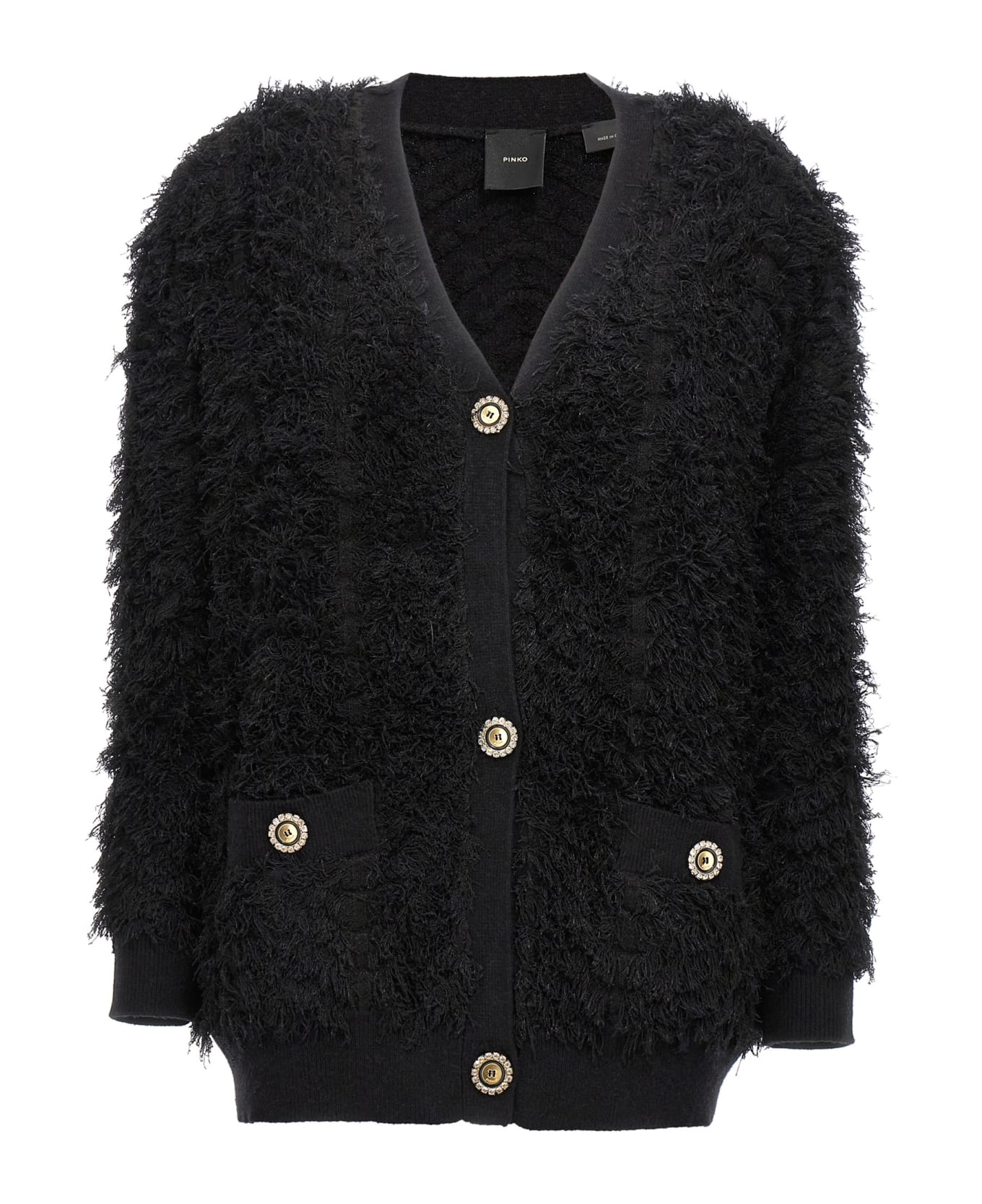 'Pecora' wool blend cardigan with jewel button closure, pockets, long cuffed sleeves.