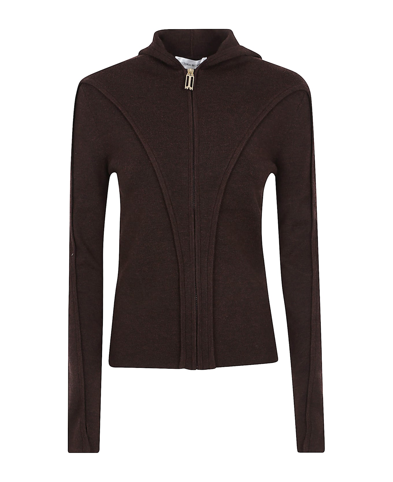 Wool blend sweater by VICTORIA BECKHAM. Zip closure; hood; long sleeves; regular fit that hugs the body. Features stitching details.