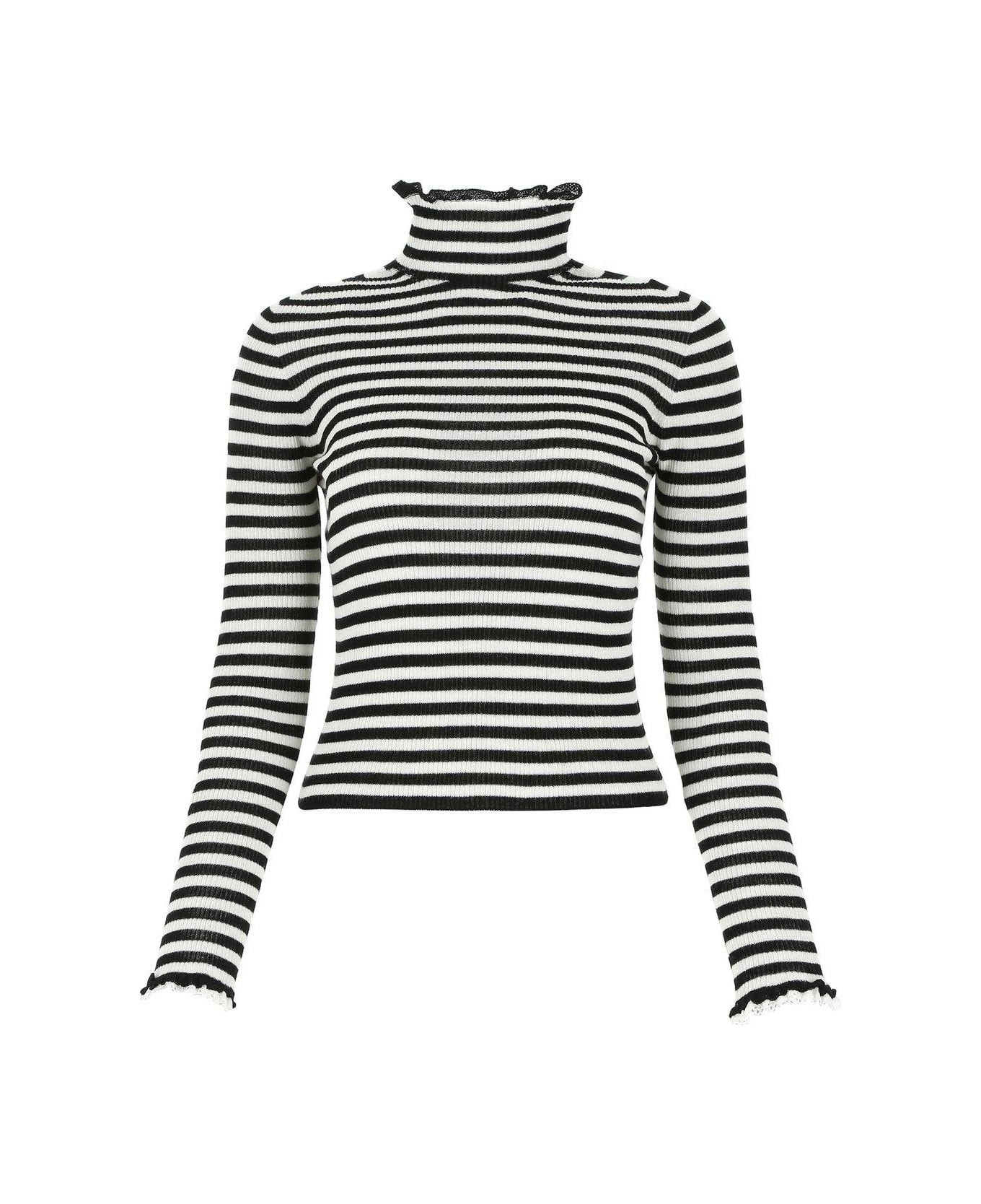 Ruffled Turtleneck Striped Jumper
