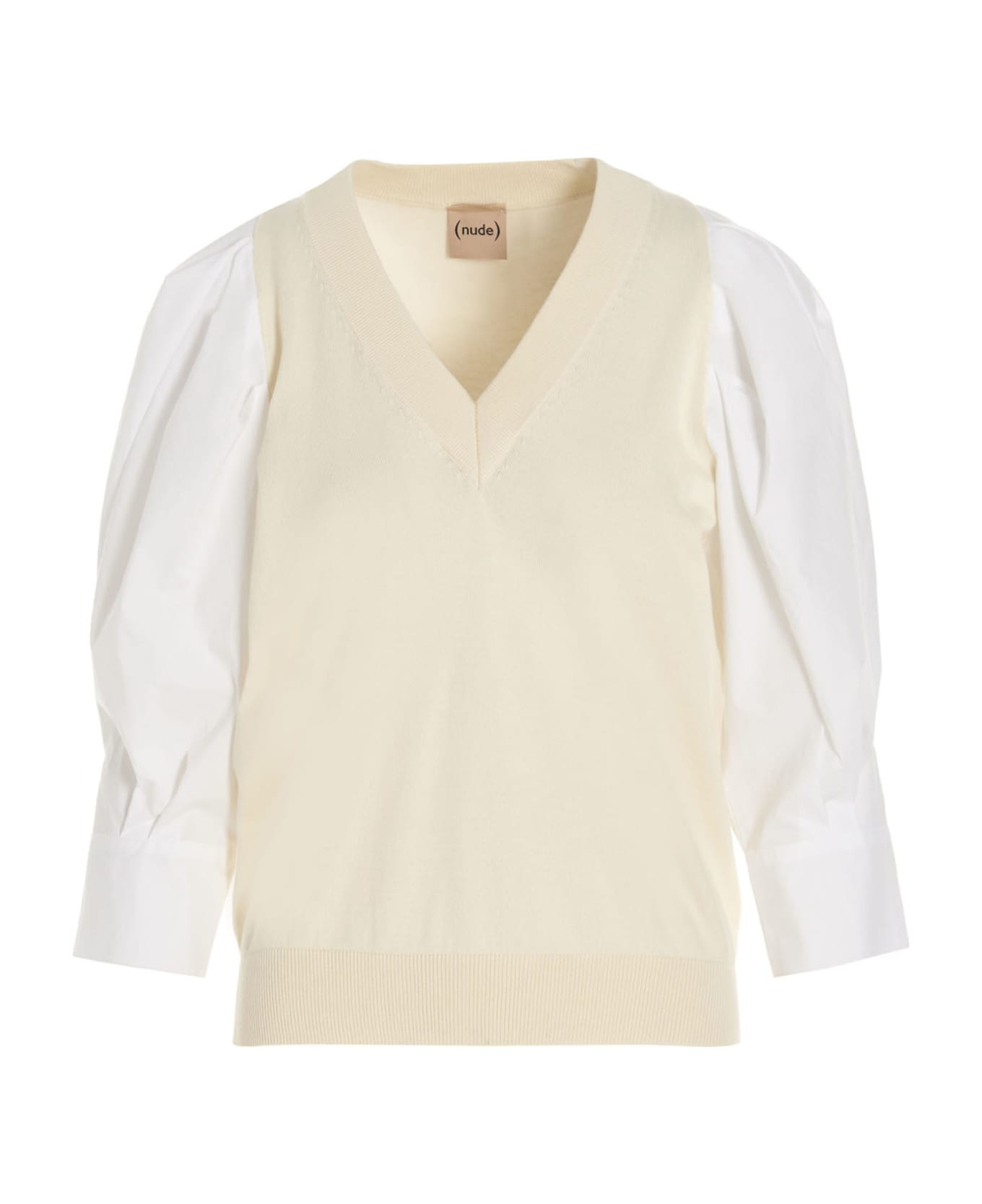 Sweater with V-neck and puff shirt sleeves.