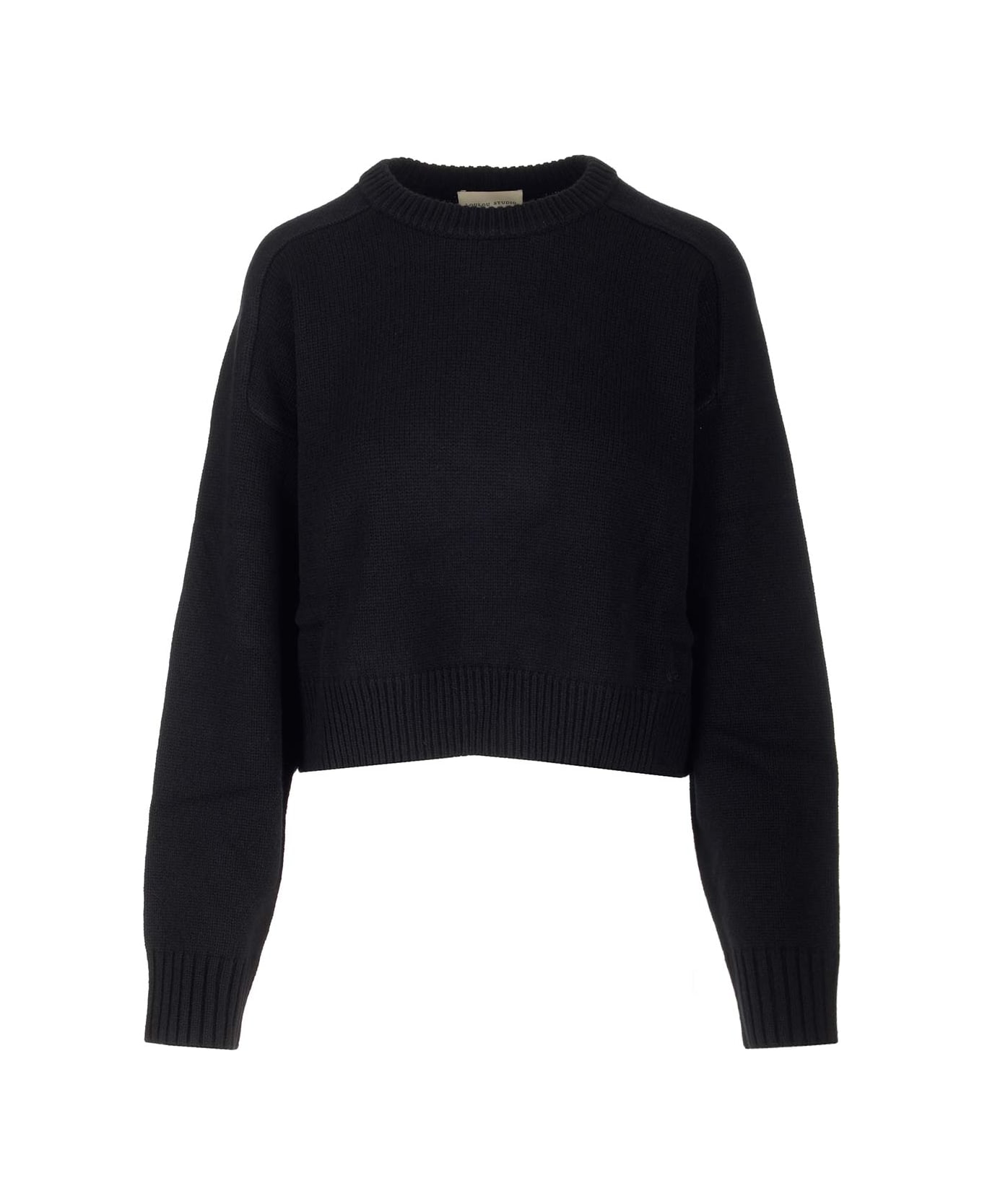 Boxy fit sweater in black wool and cashmere knit from LouLou Studio.