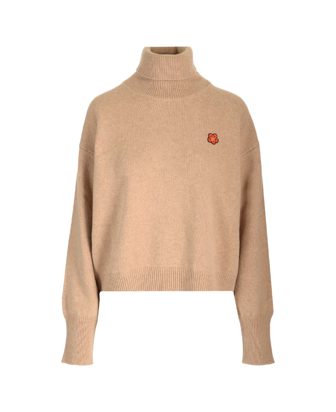 Boxy fit turtleneck in beige wool with boxy line from Kenzo.