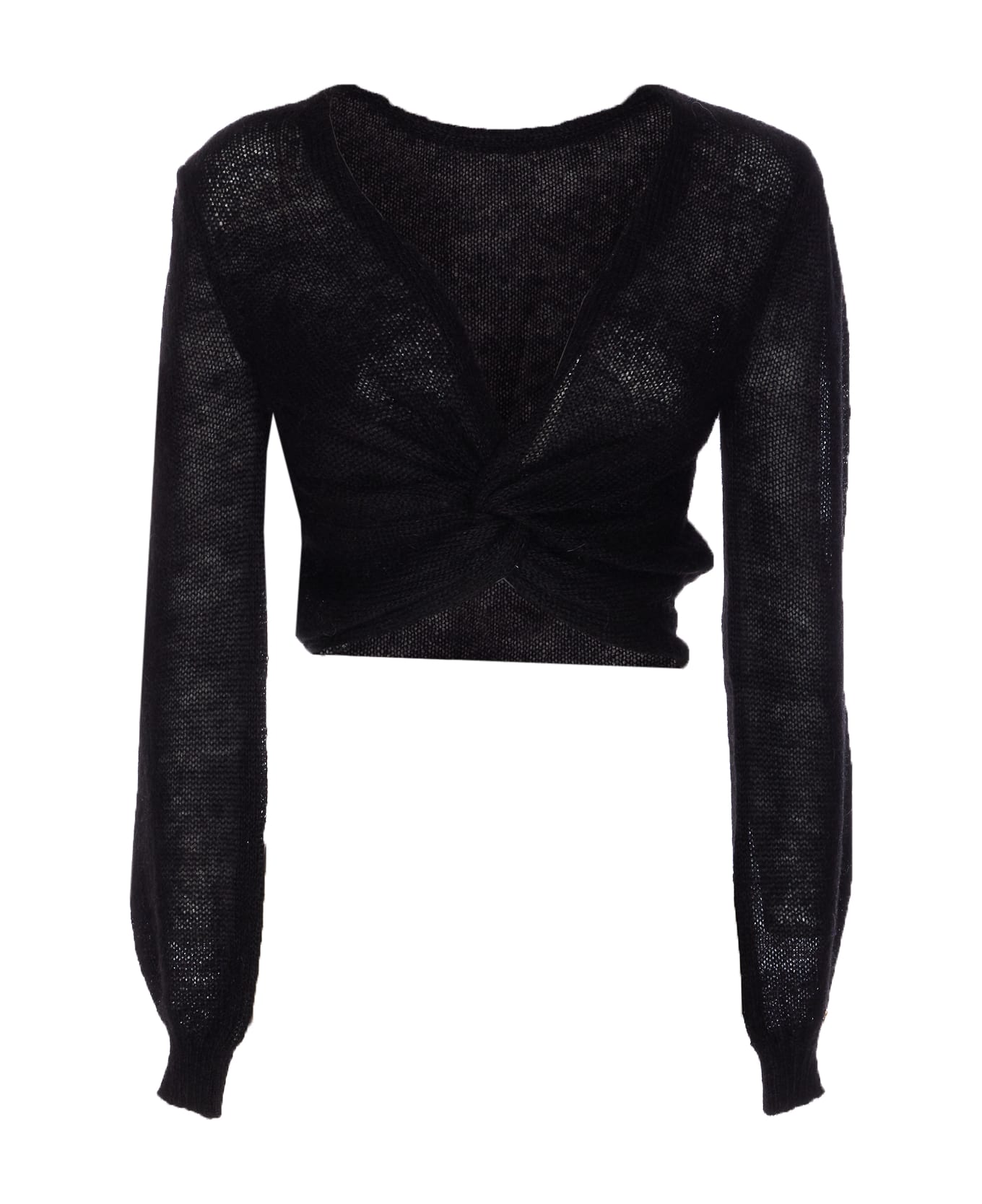 Twinset black sweater, v deep neck, knot on front, cropped Composition: 40% Polyamide, 30% Mohair, 30% Wool