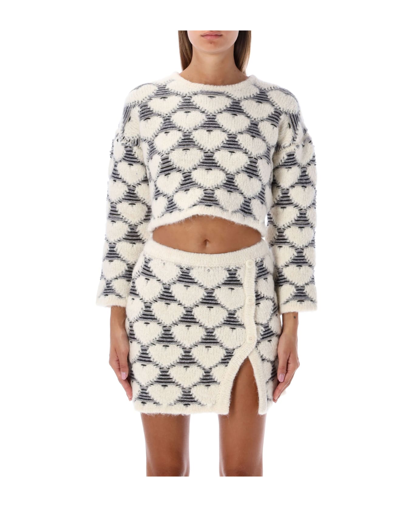 Floating Hearts Sweater By Marco Rambaldi. Featuring: Crew Neck Long Sleeves Floating Hearts Motif Allover Cropped Length The Model Is 1,72 M Tall And She's Wearing Size S