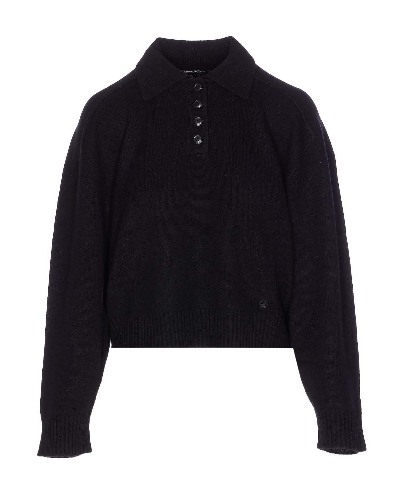 Loulou De Saison black Homere sweater, regular collar, long sleeves, buttons closure,