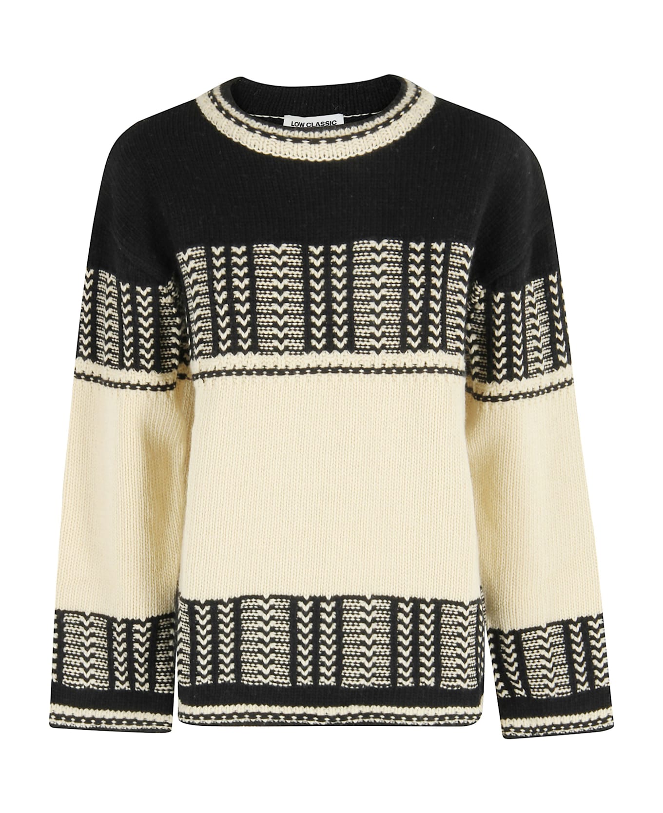 Sweater -Low Classic -Black color -Long sleeve -Neckline -Jacquard pattern