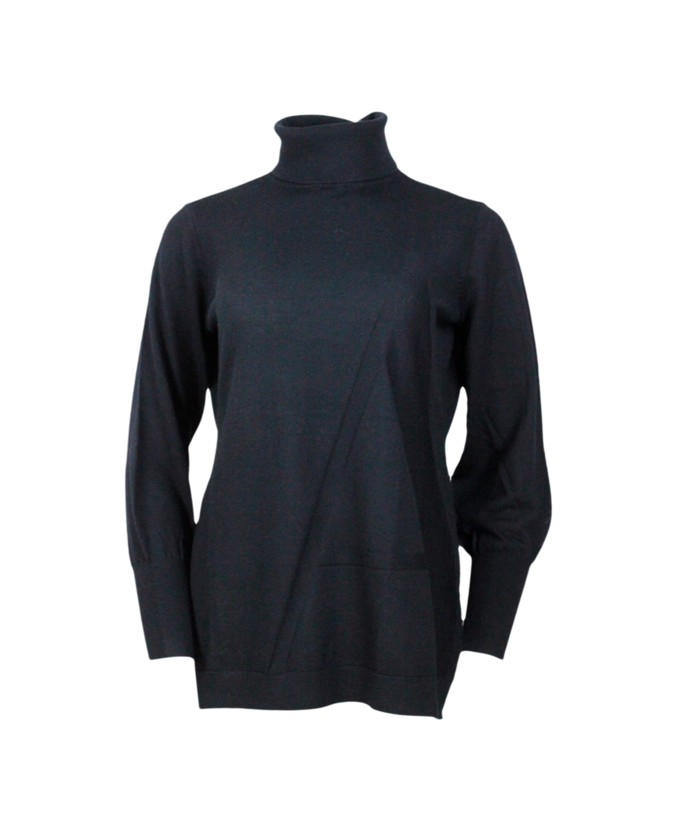 Long-sleeved Turtleneck Sweater With Stylized Letter On The Front Made Of 100% Virgin Wool