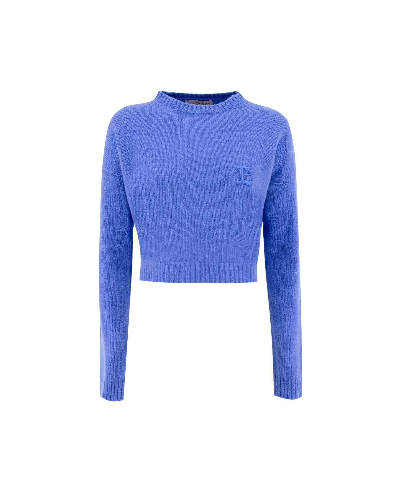 Short crew neck sweater with a fitted waist, made of a soft wool and cashmere blend, ribbed edges, slim fit. Composition: 85% WV, 15% WS
