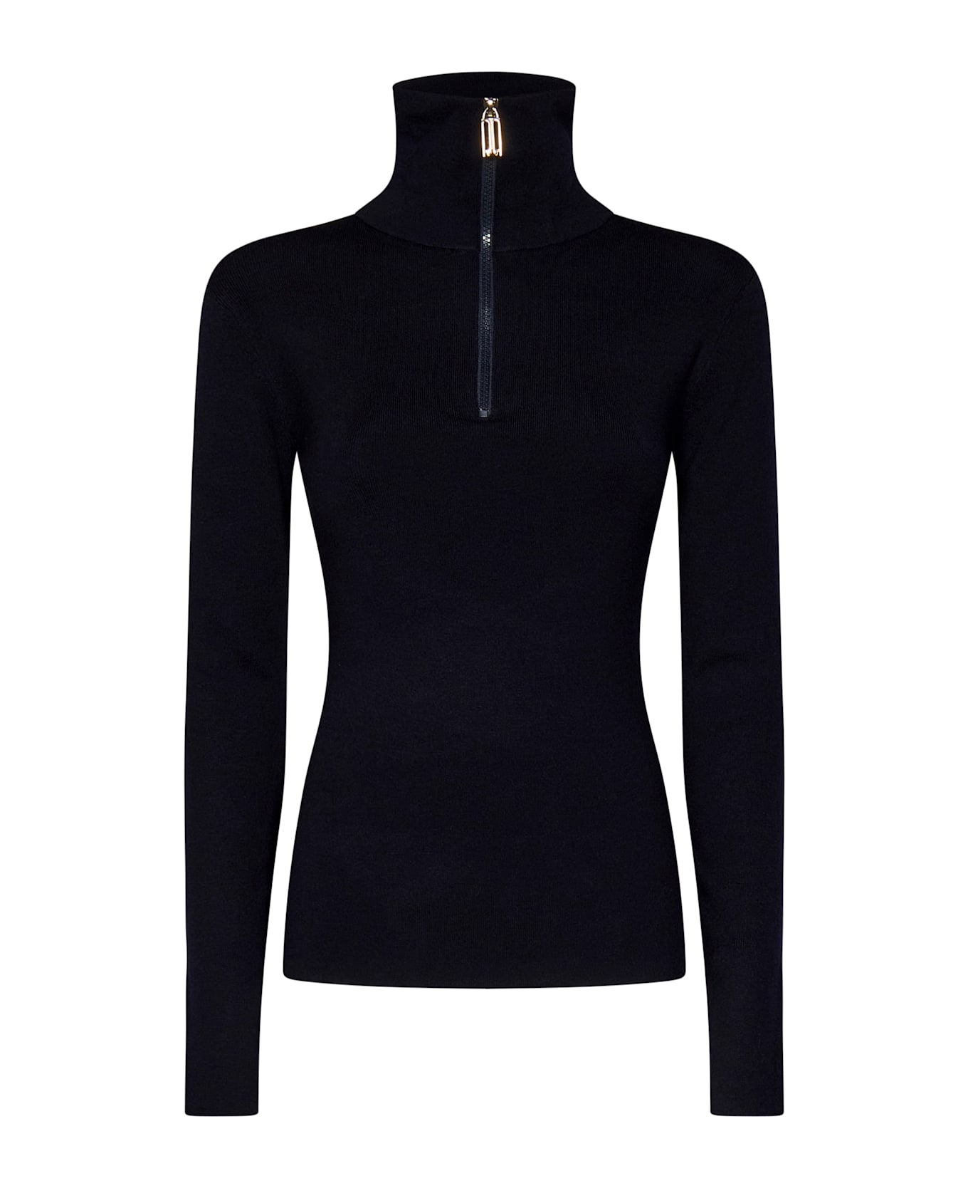 Composition: Front Closure With Half Zip; Gold Metal Zip Puller In The Shape Of A B Long Sleeves; Straight Hem Fine Knit Slim Fit Color: Midnight Blue 83% Merino Wool, 15% Polyamide, 2% Elastane Made In China