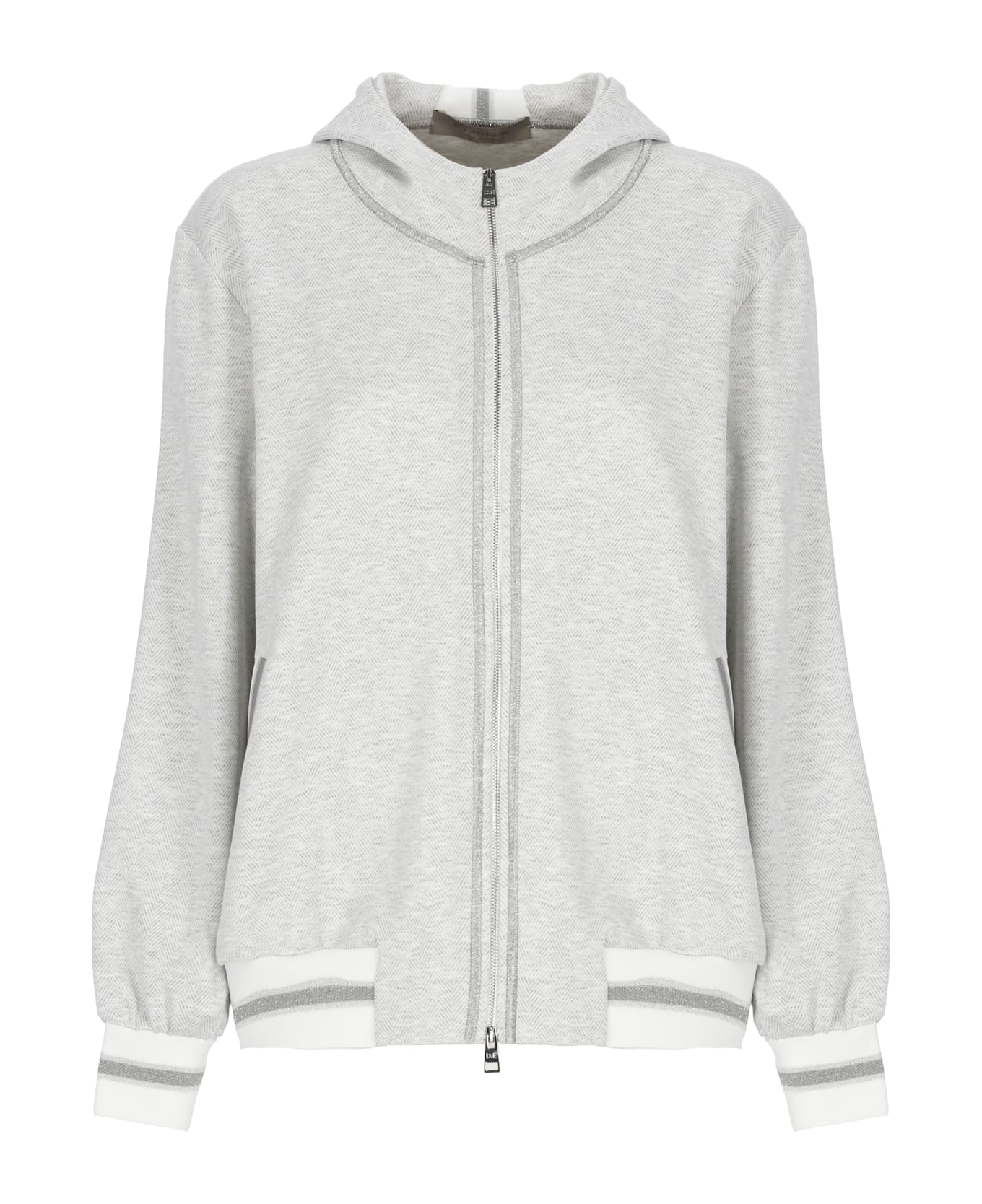 - Grey D. Exterior sweatshirt for woman - Hood - Long sleeves - All-over herringbone pattern - All-over lurex details - Two front slit pockets - Elastic ribbed trims