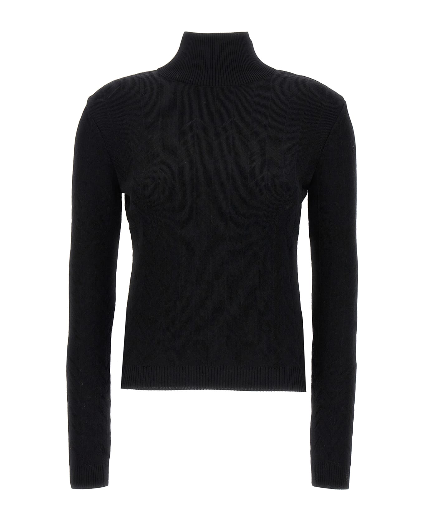 Wool blend sweater with tone-on-tone 'Zig Zag' pattern, high neck and long sleeves.