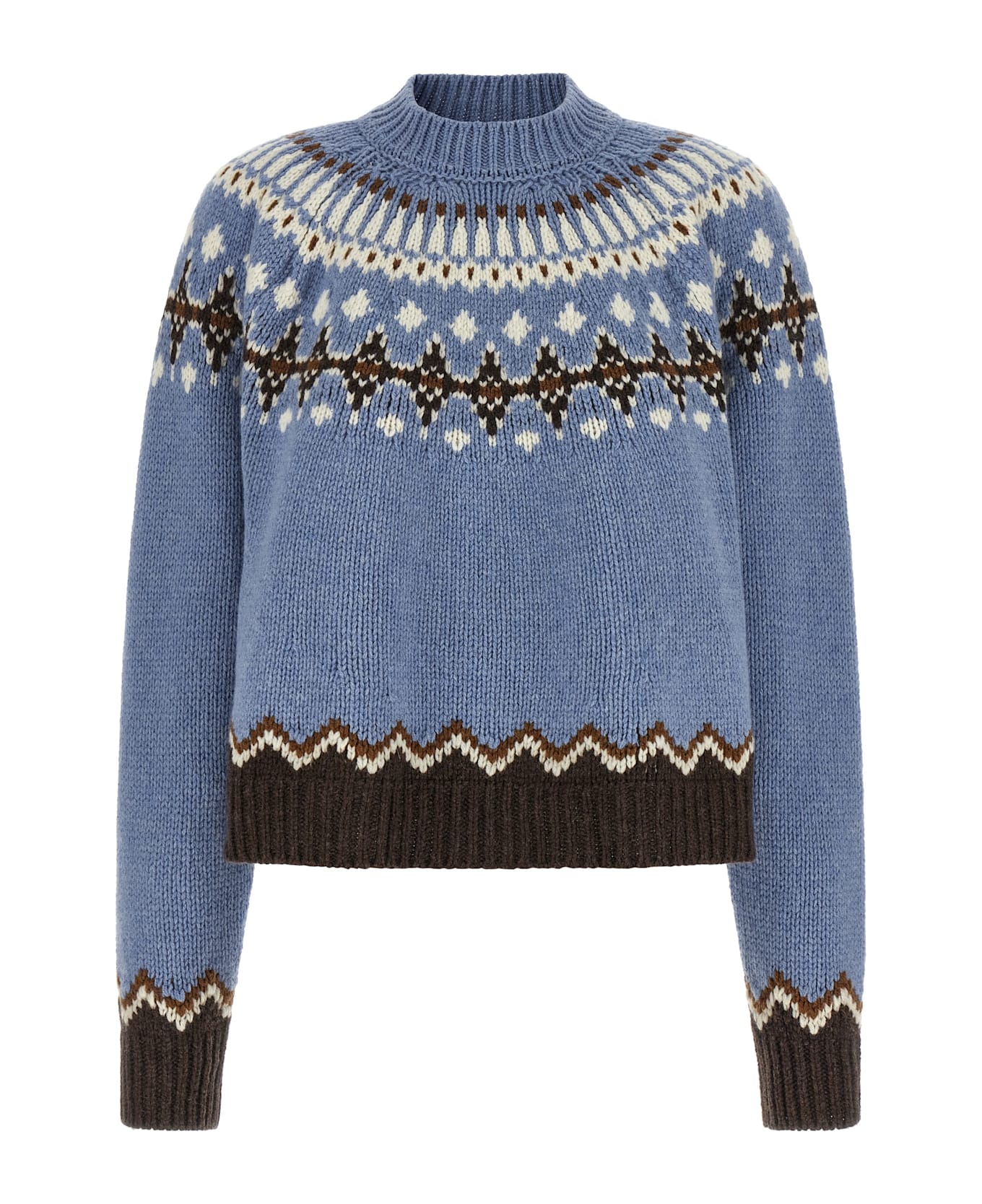 'Sweet Winter' virgin wool jacquard sweater with 'Fair Isle' pattern, crew neck, long cuffed sleeves. Composition: 100% virgin wool
