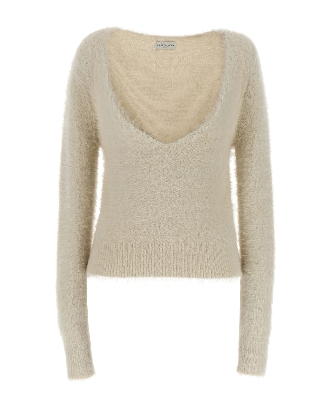 'Teron' sweater in faux fur fabric with V-neck, long sleeves.