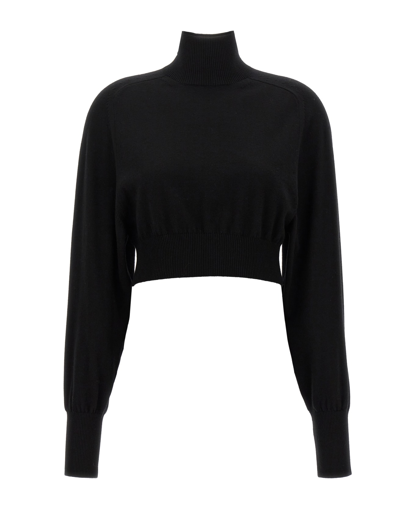 'Ululato' wool turtleneck sweater with high neck, long cuffed sleeves.