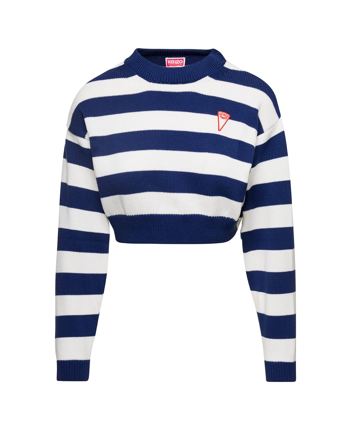PullCrew neck CroppedLong sleevesLogo patch on the front Striped motif all-over White and blue Cotton Regular fit