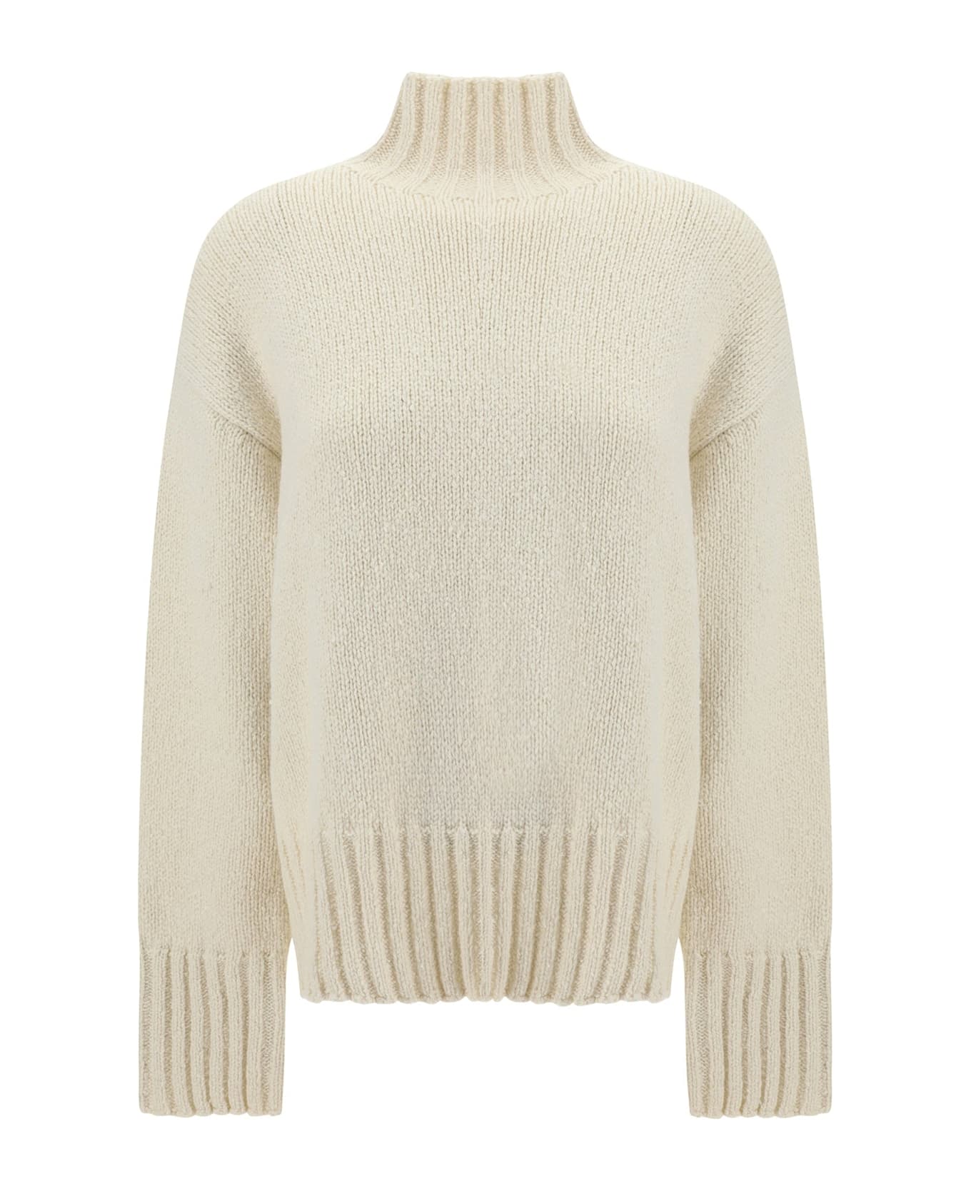 Composition: 25% Silk 75% Wool Long sleeves Ribbed trims Hand wash High neck Made in Italy