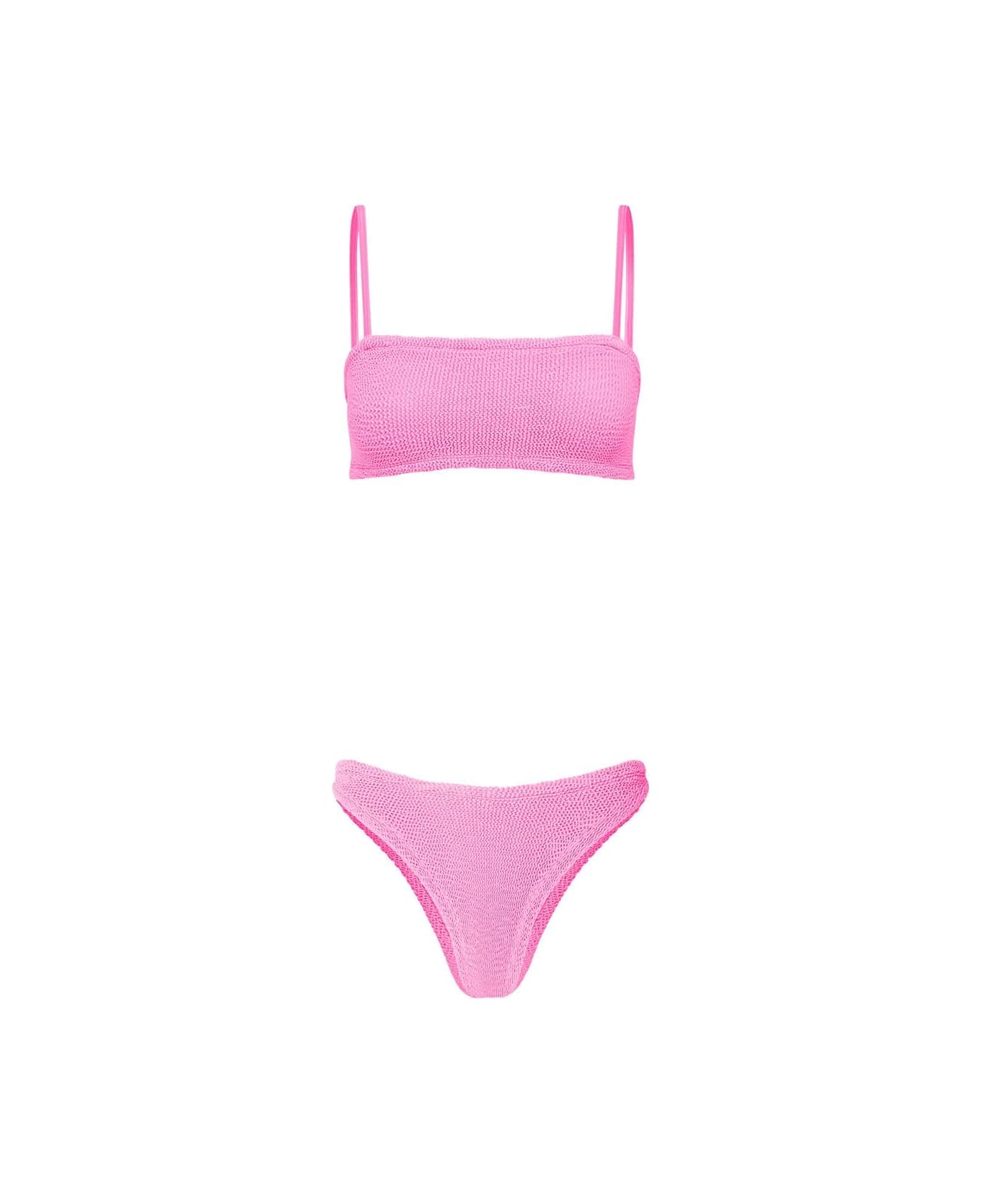 "Gigi" Bikini by Hunza G with barely-there spaghetti straps. Lighter colours may appear translucent when wet. Neon colours may fade over time. This is not a manufacturing defect. The ingenious Original Crinkle fabric is designed to flex and sculpt to your body, which is why all Hunza G items are made in one size only.
