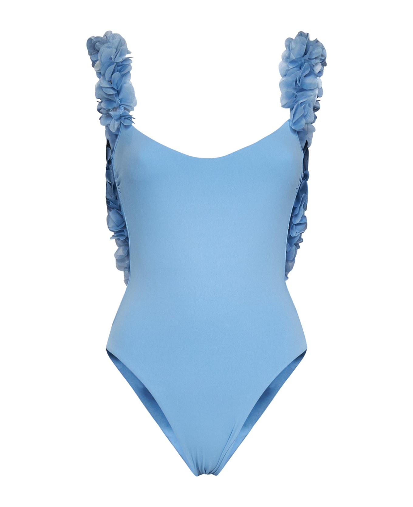 • Tone-on-tone chiffon floral ruffles-embellished thin straps