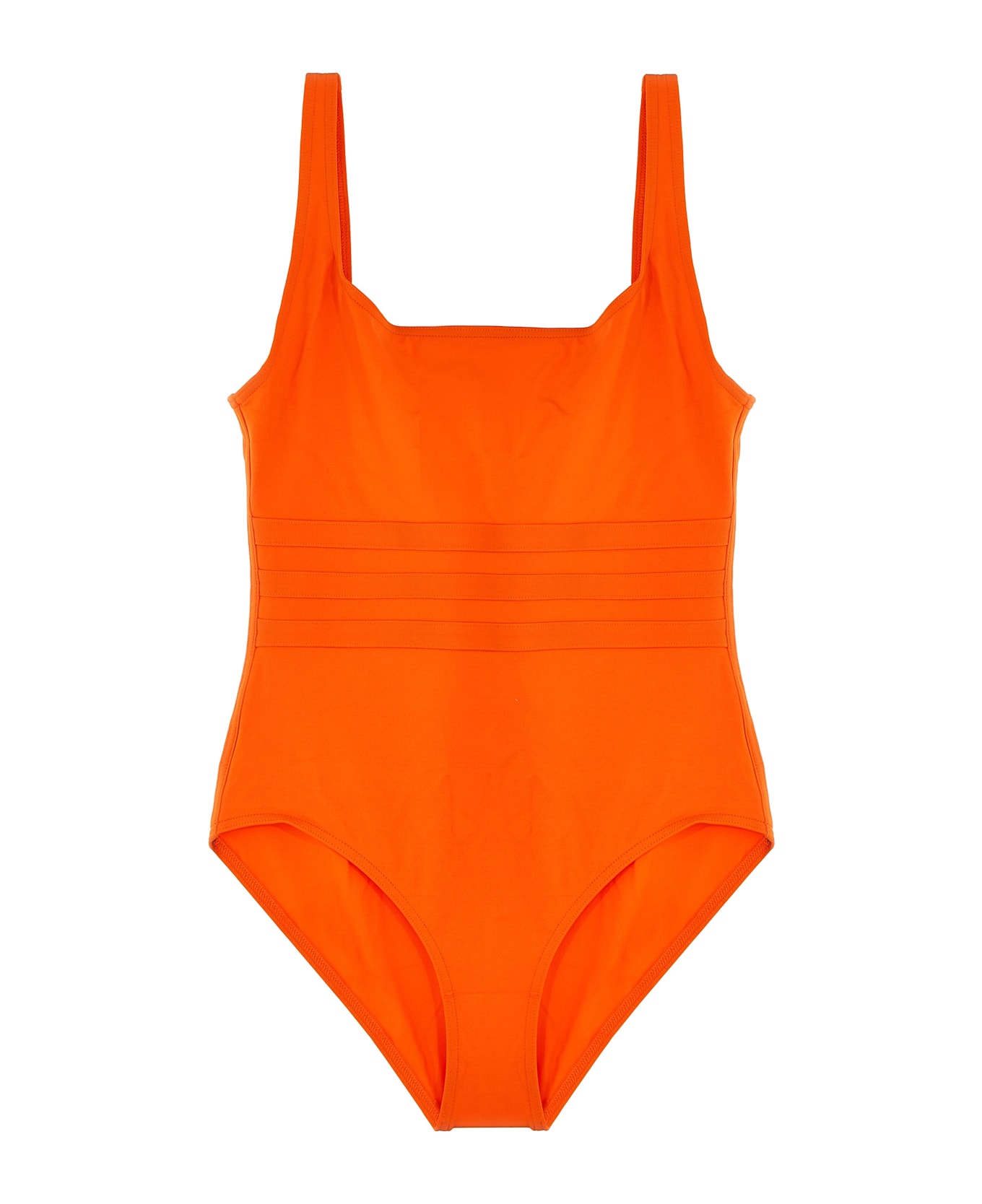'Asia' one-piece swimsuit in Peau Douce* fabric with wide straps, square neckline at the front, round neckline at the back, and bands at the waist to define the silhouette.