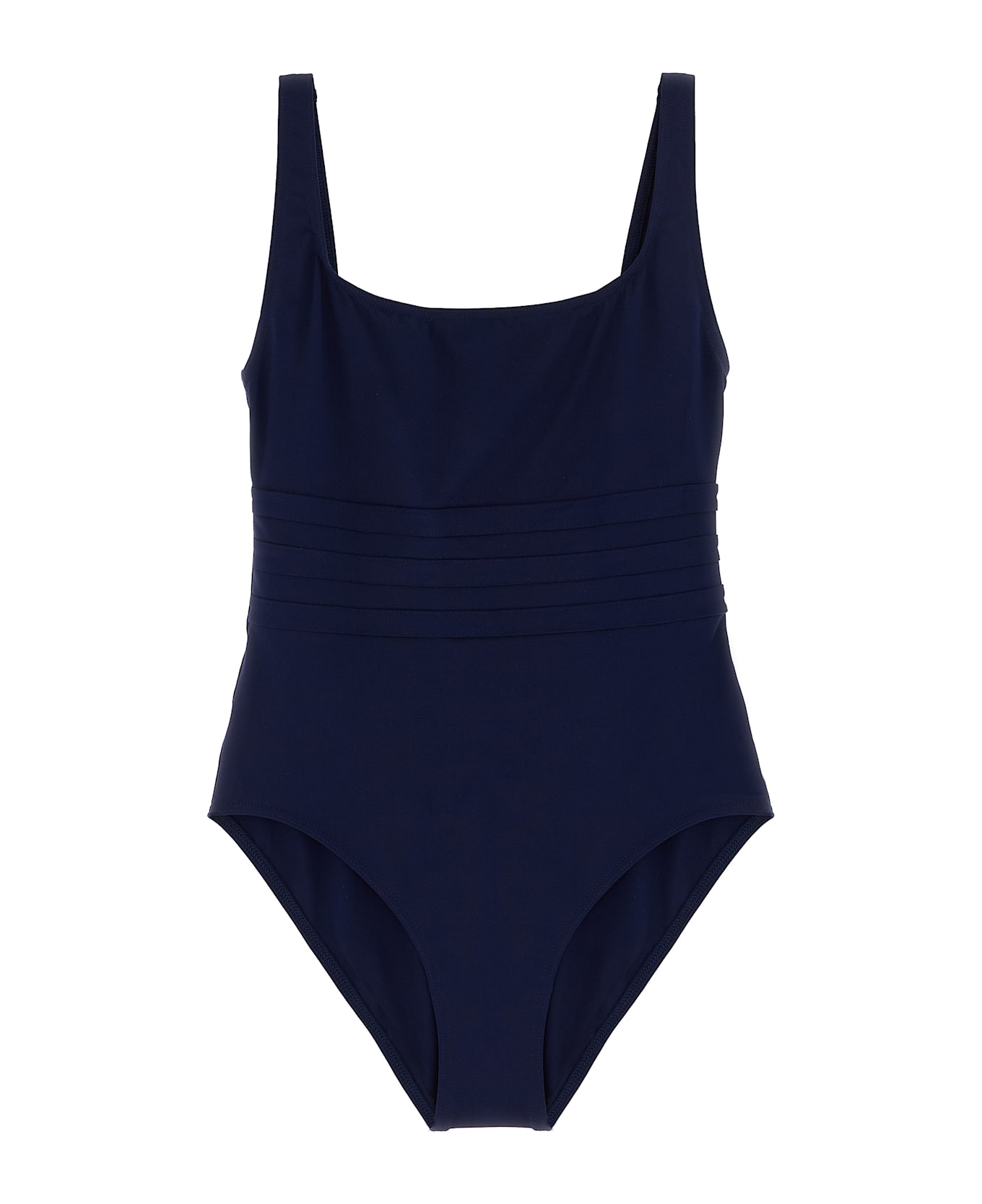 'Asia' one-piece swimsuit in Peau Douce* fabric with wide straps, square neckline at the front, round neckline at the back, and bands at the waist to define the silhouette.