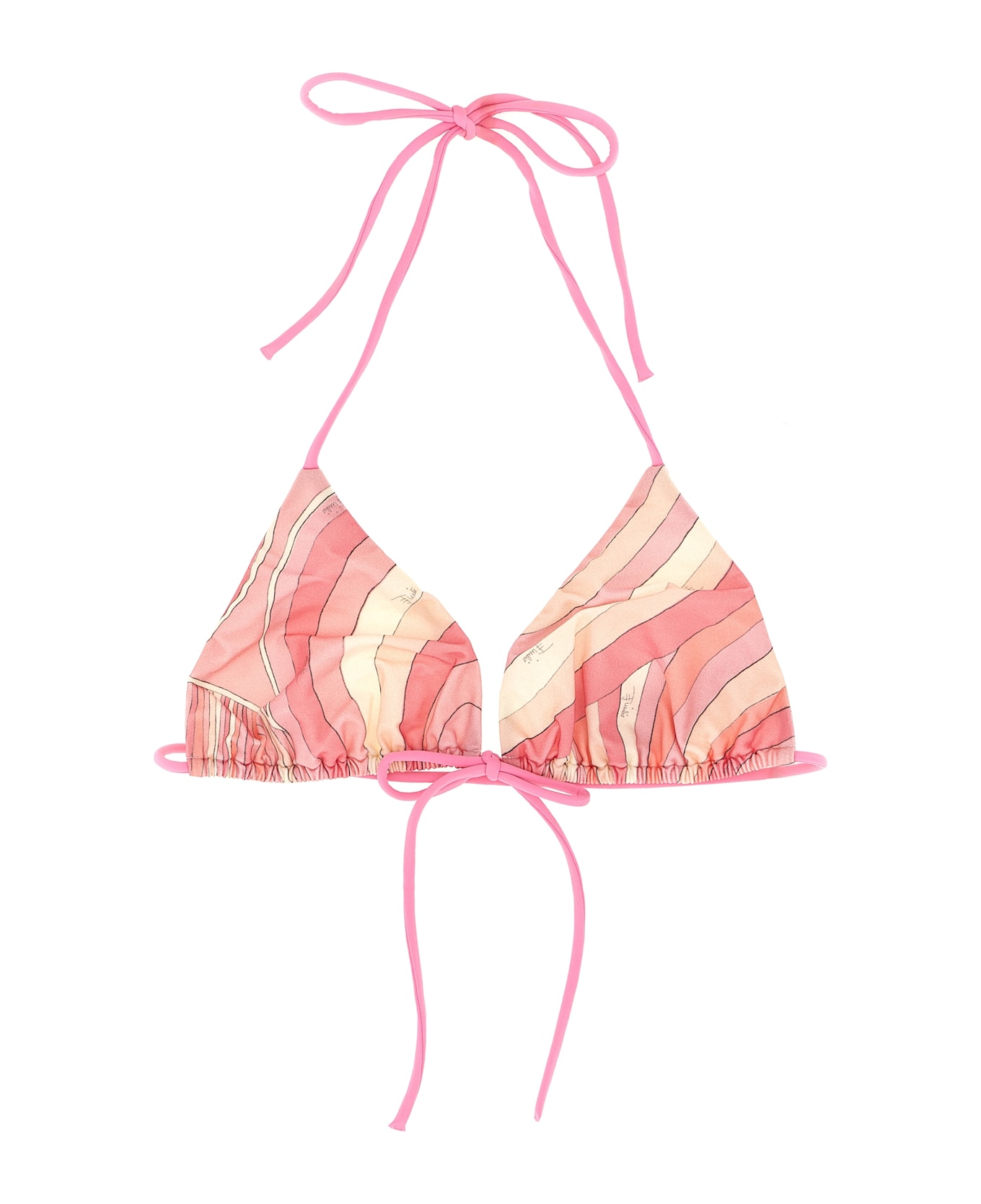 All-over print lycra bikini top with triangle style with adjustable laces, knot closure. Composition: 80% polyamide, 20% elastane