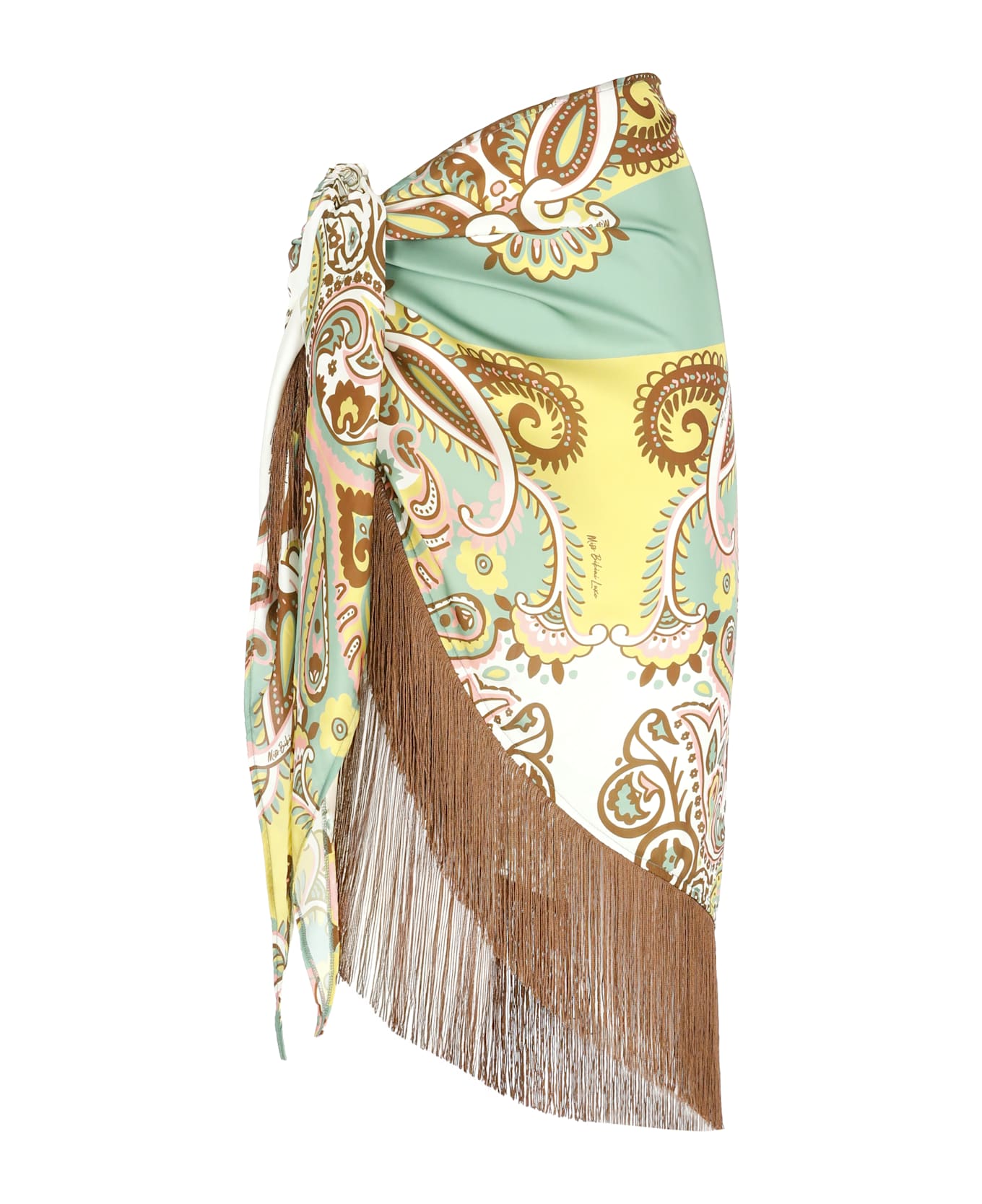 - Multicolor Miss Bikini sarong for woman - All-over Paisley pattern - Fringes at hem - Side self tie lace