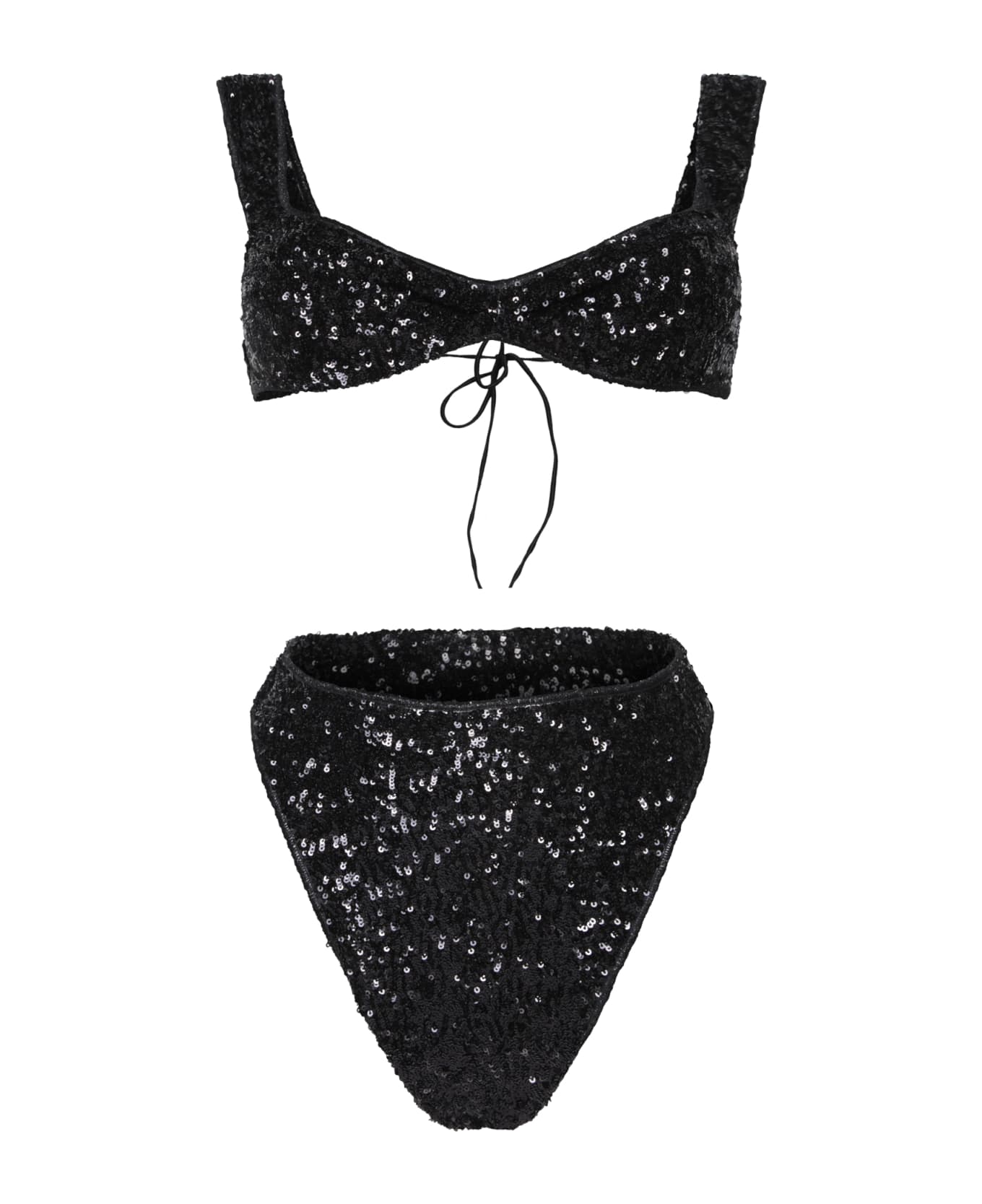 The OSEREE black sequin bikini embodies beachside glamour, featuring intense sparkle from its sequins, perfect for those seeking a sophisticated and eye-catching look.