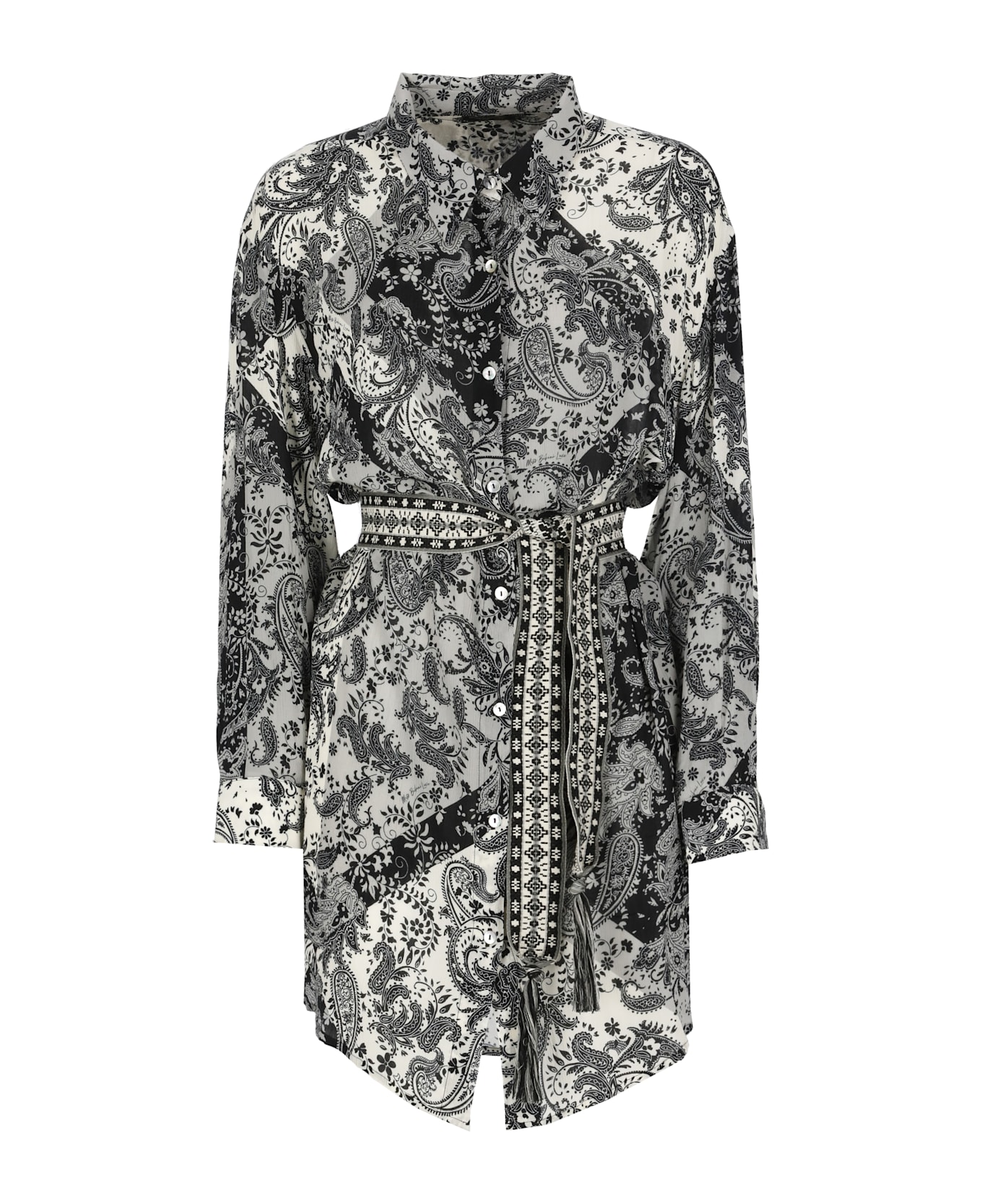 - Grey Miss Bikini viscose caftan for woman - Collar - Long sleeves with buttons at cuffs - Front fasteing with buttons - Belt loops - Matching belt included
