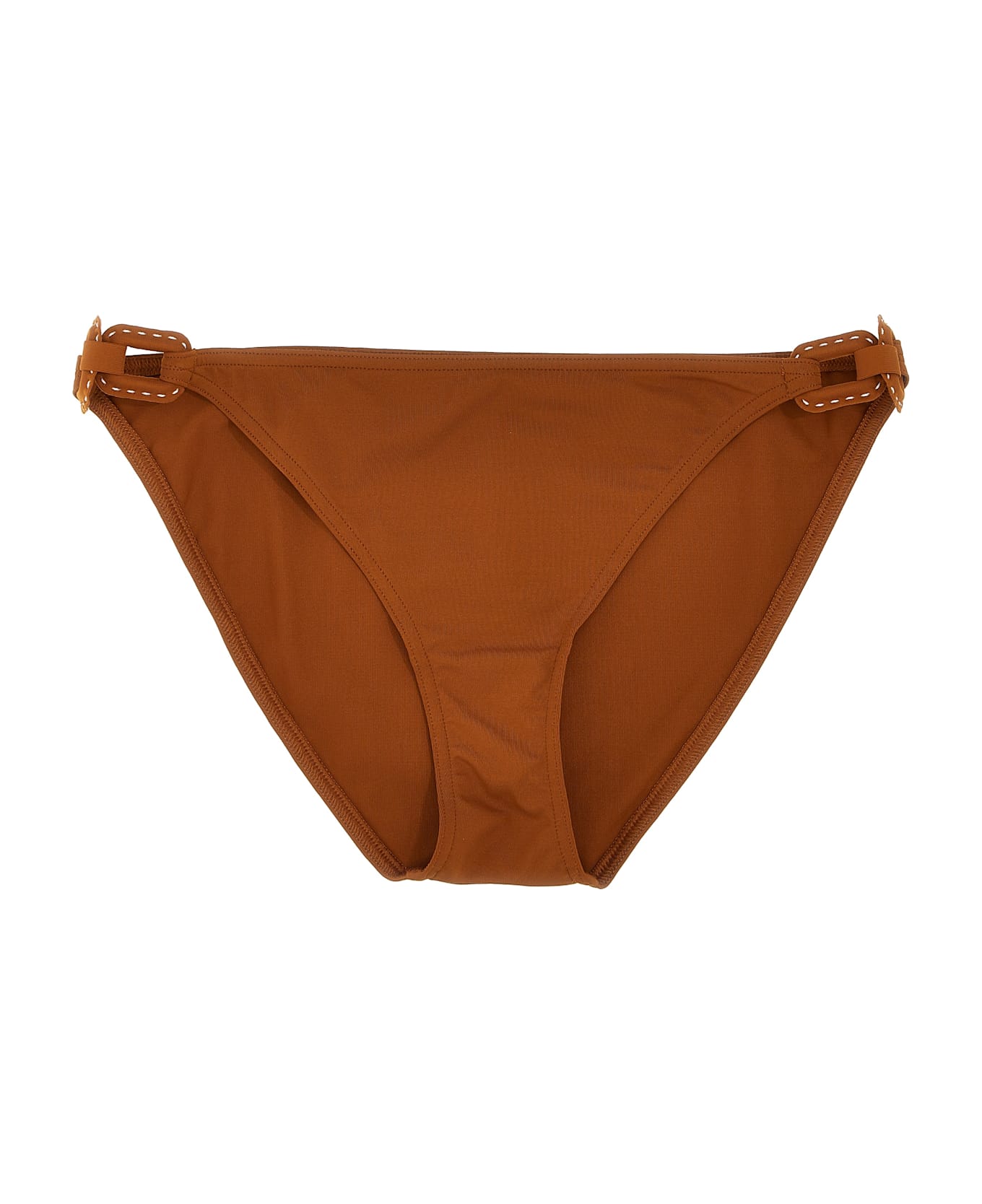 Crique' bikini bottoms in Peau Douce* fabric with decorative side buckles, classic model.