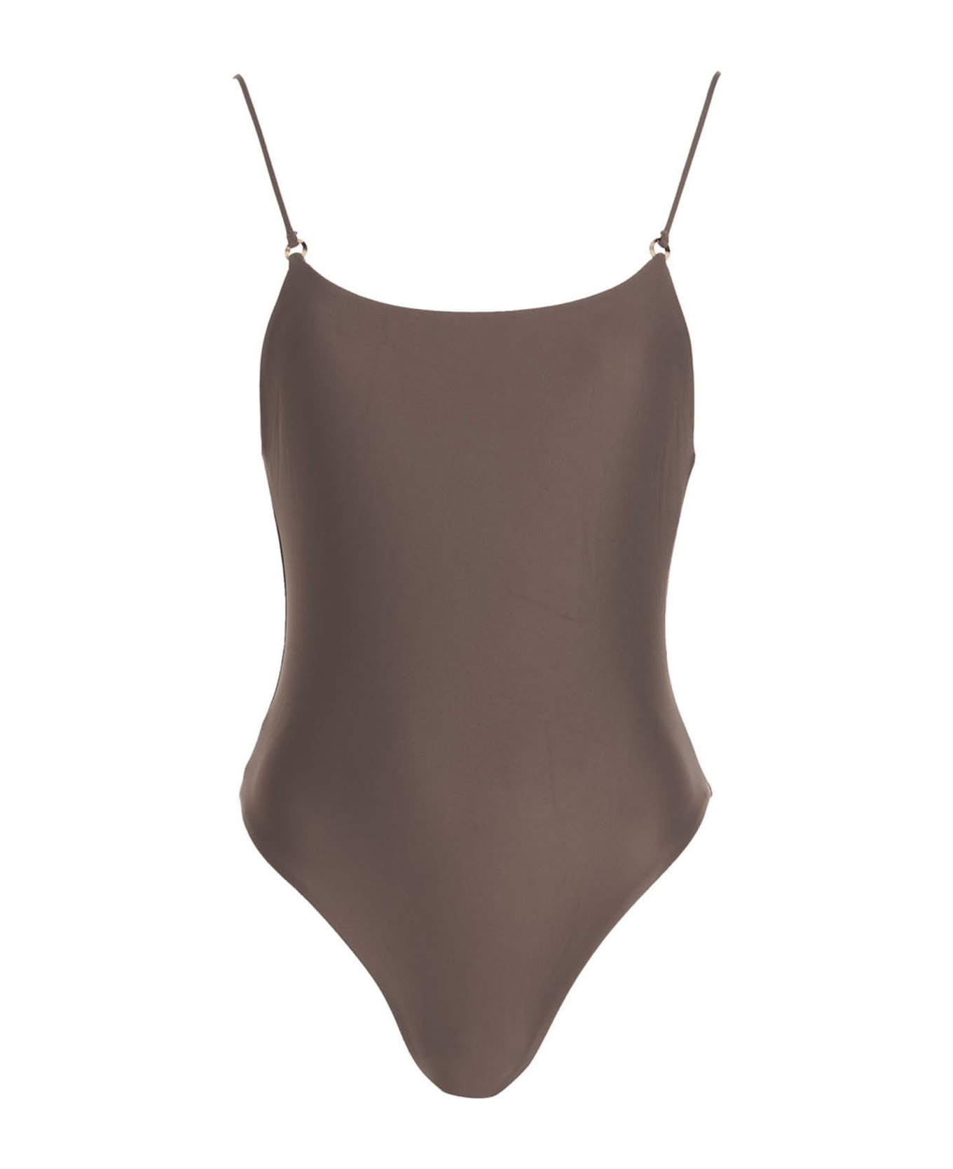 Hinge one-piece swimsuit crafted in a stretch fabric featuring thin straps, a ring detailing and a deep V at the back.