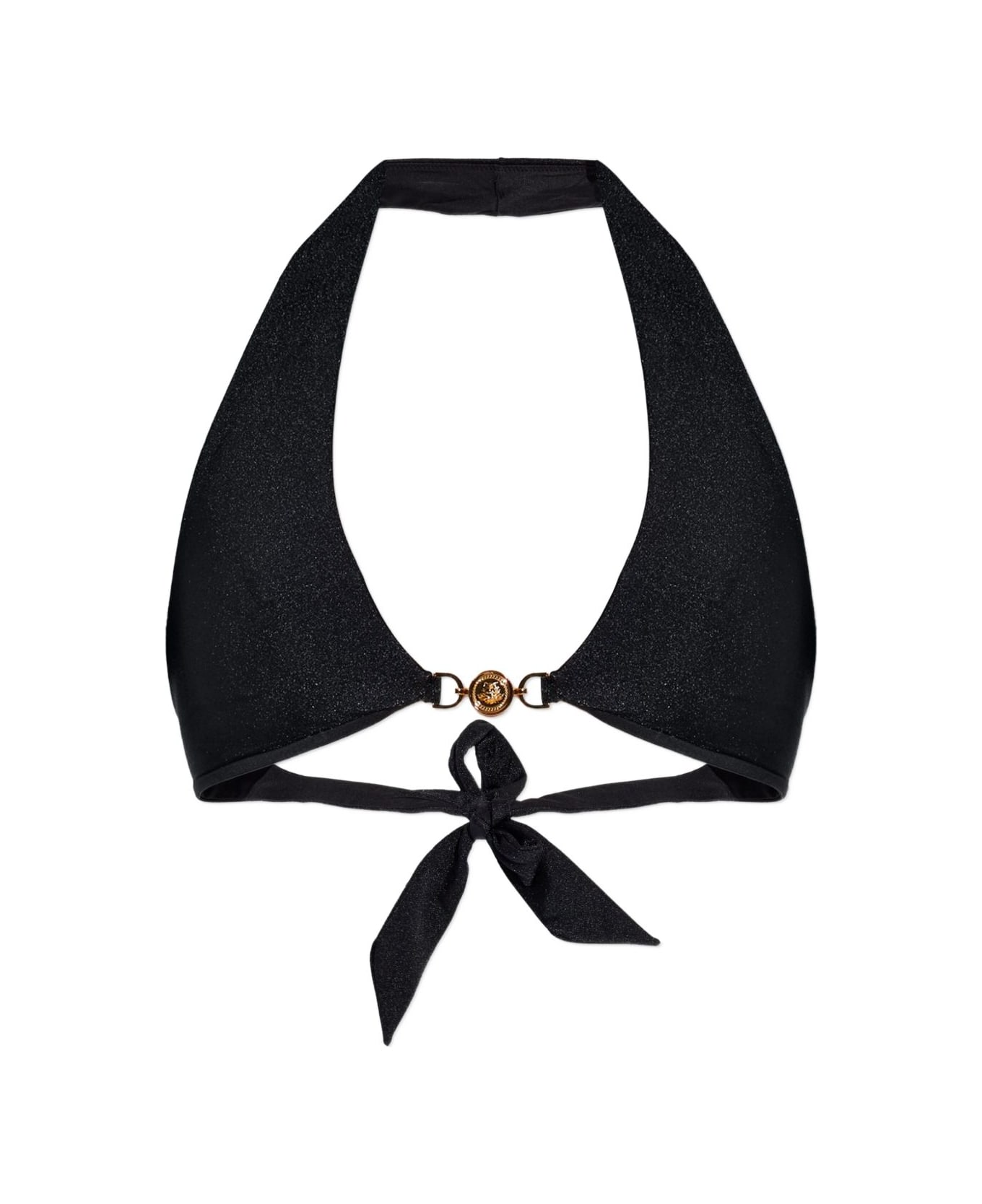 black halterneck medusa detail tie fastening triangle cup string detail Be mindful to try on swimwear over your own garments. Composition: Outer: 20% Elastane, 80% Nylon; Lining: 12% Elastane, 88% Polyester