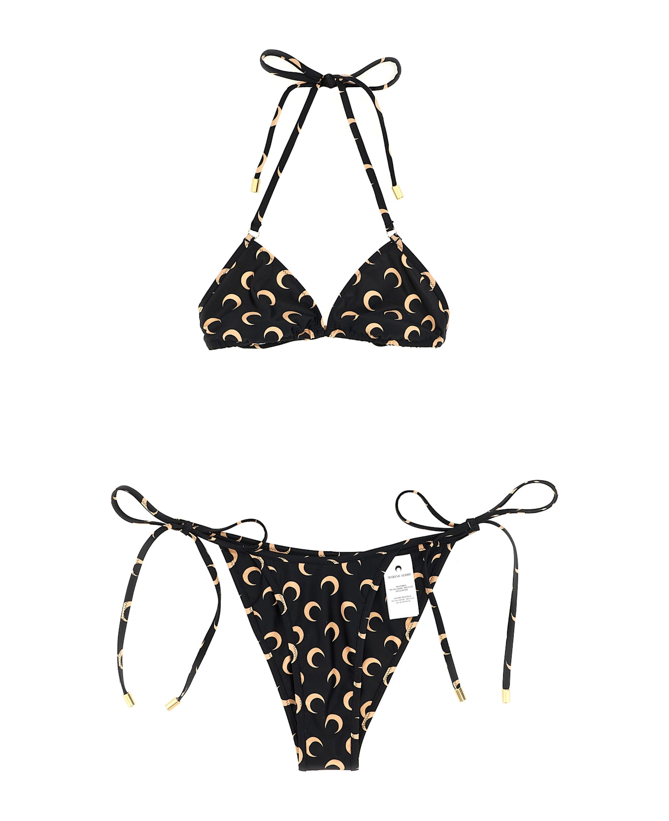 Bikini in stretch fabric with all-over logo print, triangle top with lacing, briefs with lacing on the sides.