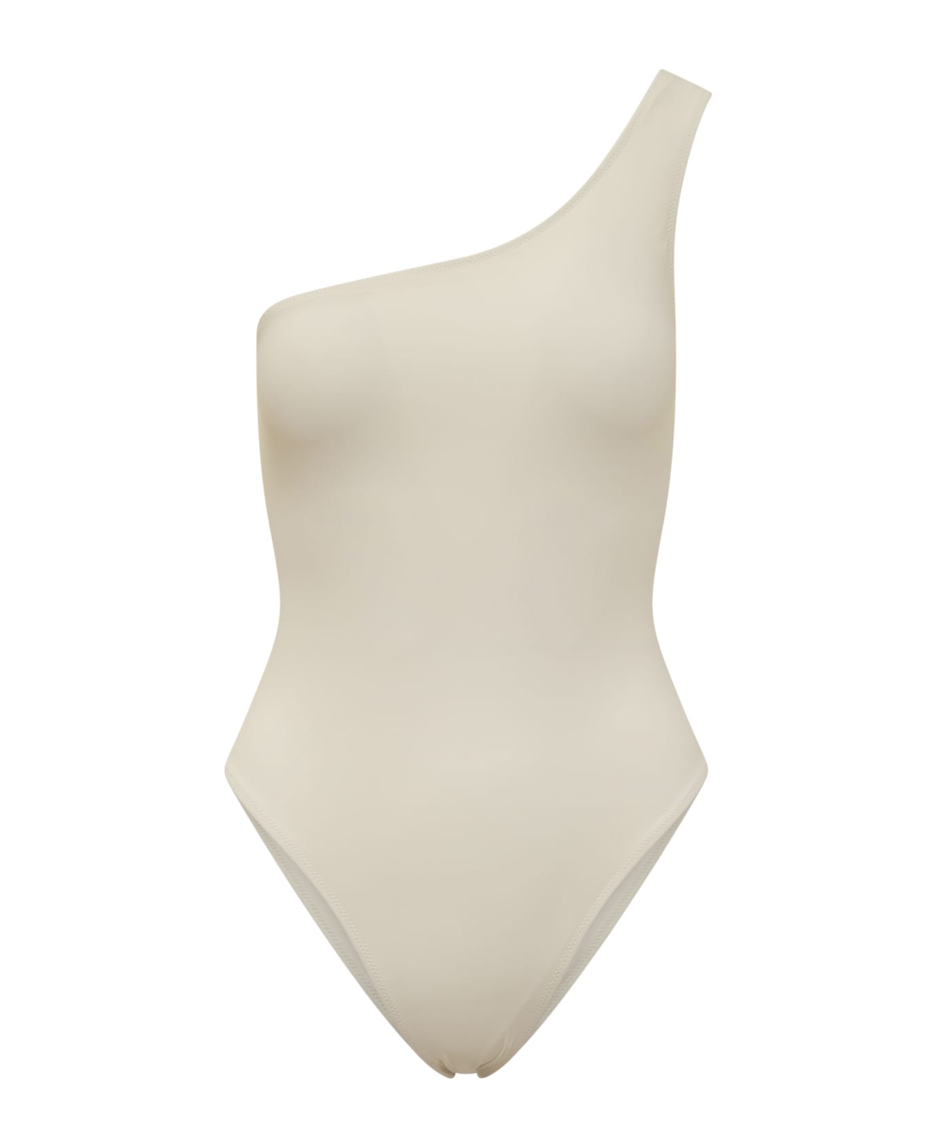 One-piece swimsuit. One-shoulder. Asymmetric neckline.
