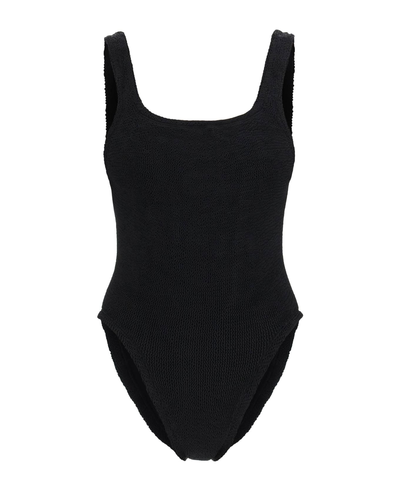 One-piece swimsuit by Hunza Gcrafted in crinkle stretch fabric. Squared neckline, high-cut briefs and scooped back.