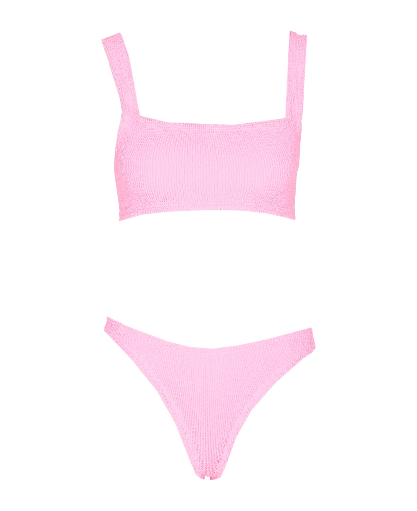 Hunza G is a British sustainable swimwear label with a one-size-fits-all approach. Created in 1984, the label became famous for the cut-out mini dress worn by Julia Roberts in Pretty Woman. Today, Hunza G makes stylish swimsuits and bikinis for women, featuring bright hues and the brand's signature crinkle fabric.