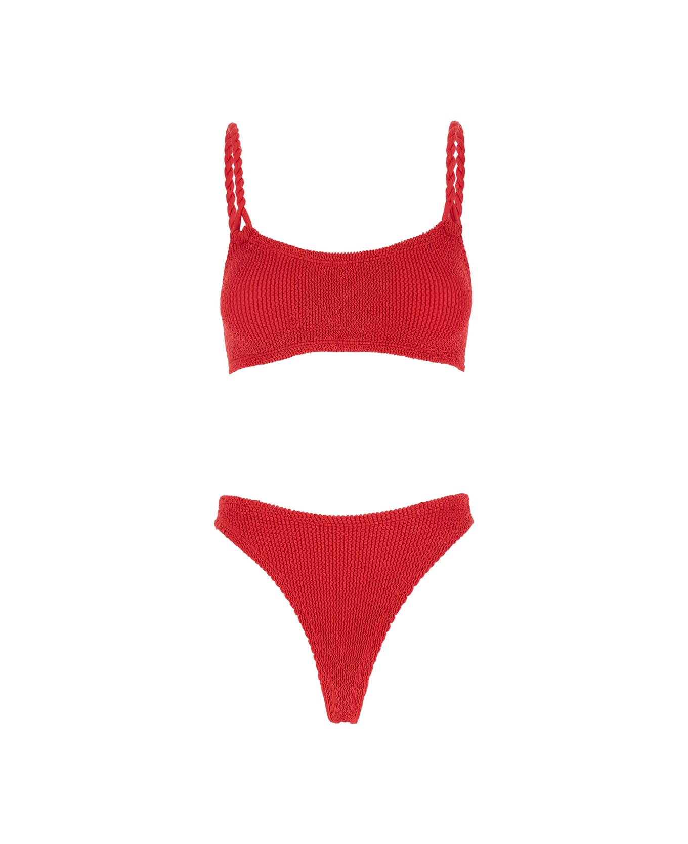 'phoebe' Red Bikini With Twisted Straps And Scoop Neck In Tech Fabric Woman