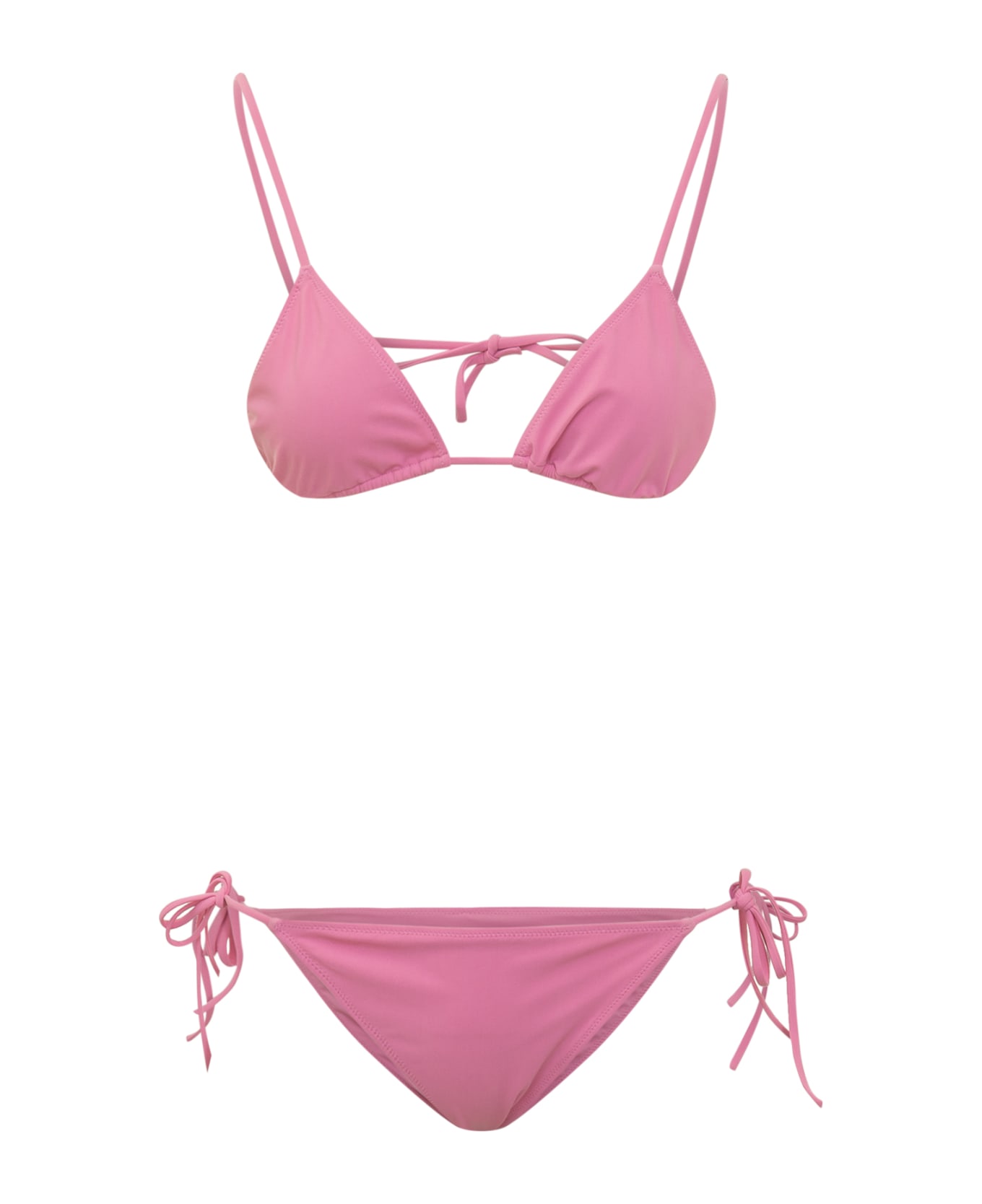 Self tie bikini. Top with laces on the back. Bottom with side laces.