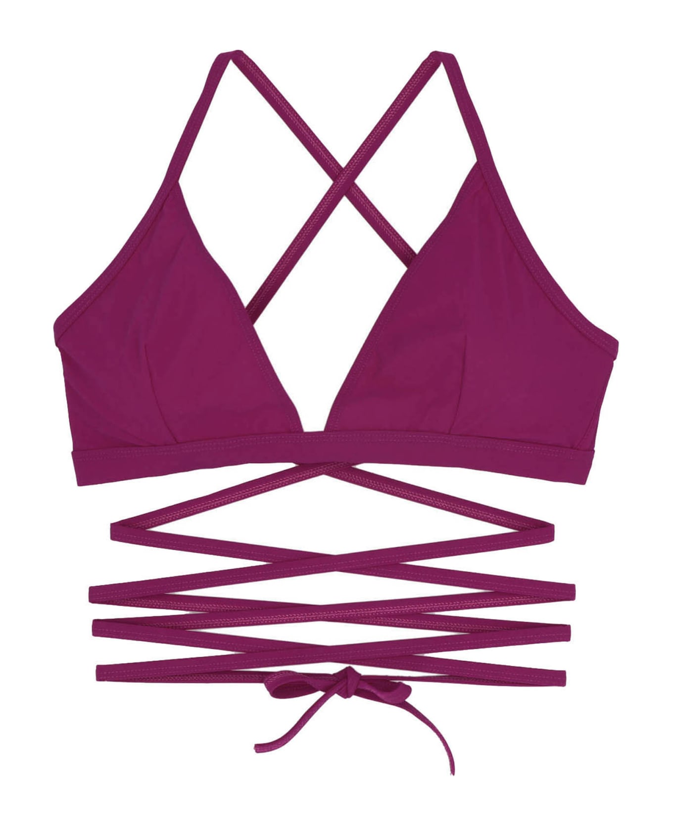 'Solange' bikini bra featuring a closure with extra long laces. Composition:
